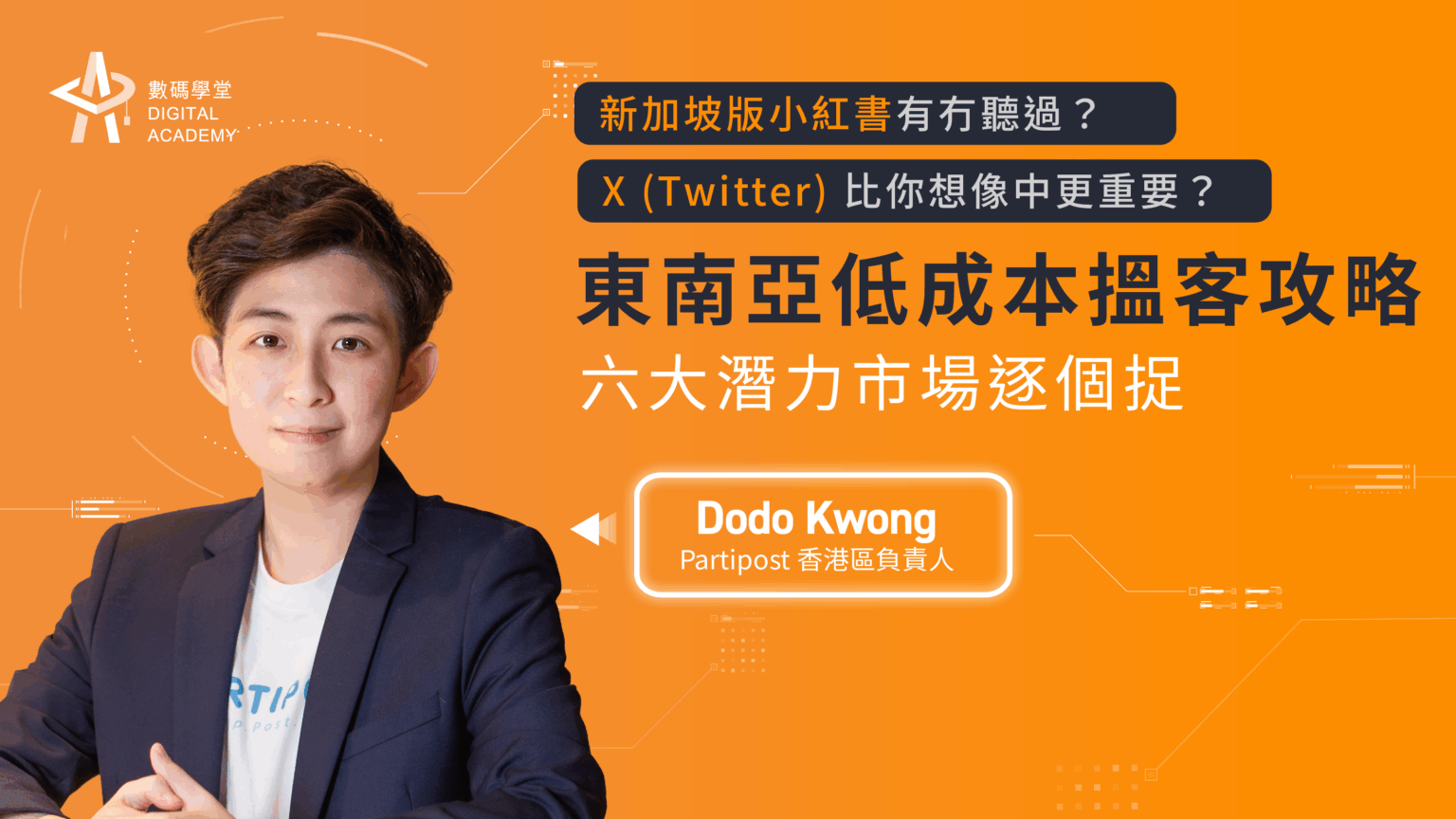 有沒有聽過東南亞版小紅書?香港中小企出海,以為要使大錢,搞一大輪才有起色?其實比你想像中更易!新加坡、馬來西亞、菲律賓、印尼、泰國、越南都有大量客戶等著你!Partipost香港負責人Dodo,分享六大東南亞市場趨勢及特色,讓你精準找出適合自己的海外潛力市場!