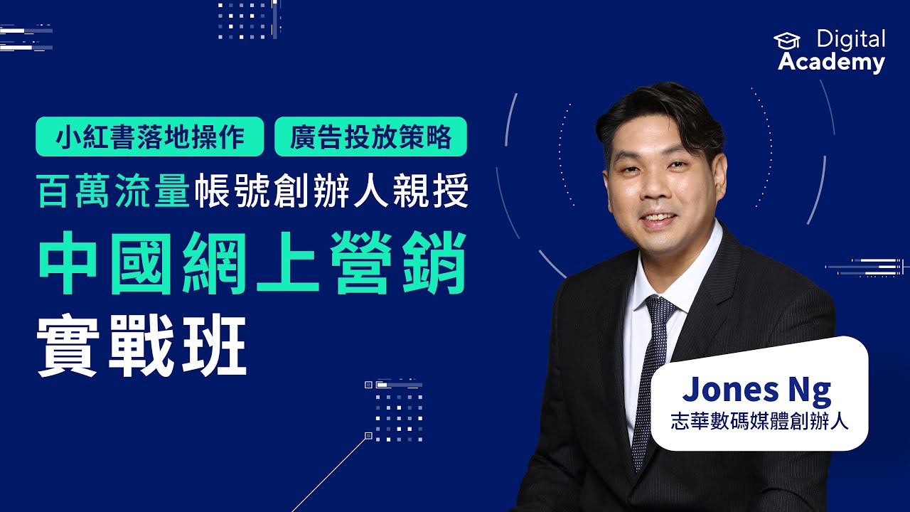 中國社交平台用戶數以億計,若能從中打響知名度,業務將迎來爆發式增長!如何由零開始,一步步建立中國網絡行銷策略?志華數碼媒體創辦人Jones Ng ,亦是擁有逾30萬粉絲、每月過百萬流量的微信公眾號創辦人,分享中國網上營銷實戰操作,由入門到高階技巧一次過教給大家。