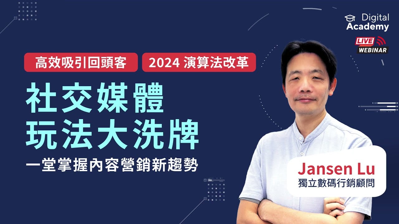 社交媒體演算法日新月異,如何吸引目標客戶眼球,成功留住他們,更培養他們成為回頭客?過去以建立品牌形象為基礎的內容創作方式,亦可能要作出改變。資深獨立數碼行銷顧問Jansen,為大家分享社交媒體趨勢、演算法改革,亦會詳細教大家新式內容創作思維。