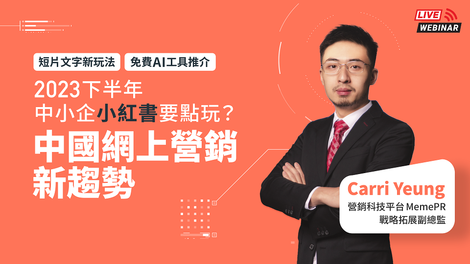 國內網上營銷趨勢日新月異,大熱的小紅書成為一眾商家的必爭之地,中小企想把握機會進入內地市場,一定要掌握當中技巧!隨著人工智能AI興起,亦有不少國內專用的免費AI工具,助你提升生產力。營銷科技平台MemePR戰略拓展副總監Carri Yeung,為大家分析中國網上營銷的新趨勢。