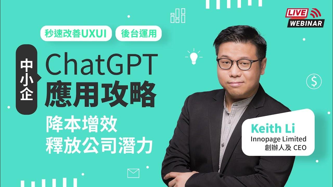 ChatGPT不斷推陳出新,其衍生的AI技術花多眼亂,到底甚麼才最適合中小企應用?ChatGPT面世至今,大量不同應用工具面世,在Innopage聯合創辦人及CEO Keith Li 李勁華在研討會中分享,自己公司對ChatGPT的應用,當中包括市場推廣、銷售、客戶服務,人力資源等。