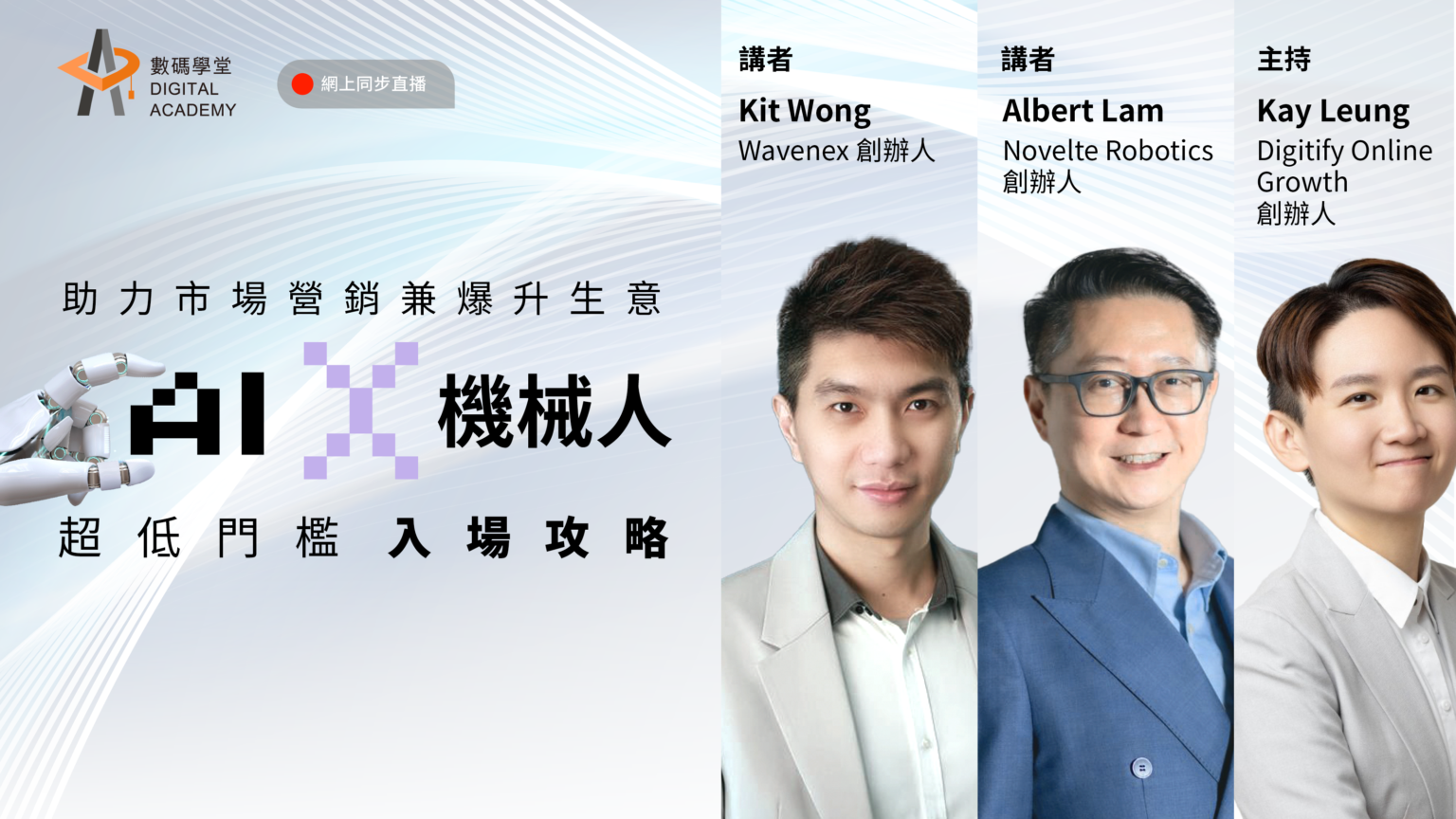 當競爭對手已開始部署AI與機械人技術搶佔市場先機,中小企如何在有限資源下快速入場追落後?Wavenex 創辦人 Kit Wong,及Novelte Robotics 創辦人Albert Lam,分享如何使用進階AI技術及機械人方案,助你提升營銷效率,拓展海外市場。
