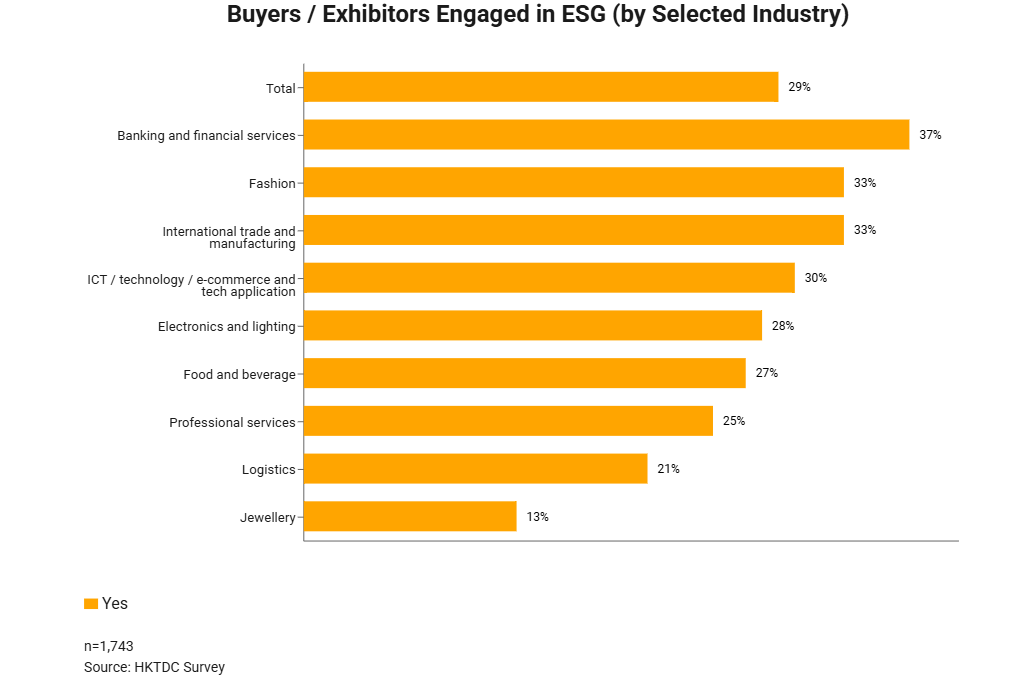 By industry, the banking and financial sector had the highest proportion of practitioners (37%) actively involved in sourcing / providing ESG solutions. While the financial sector takes the lead, fashion and international trade & manufacturing are also active in terms of ESG engagements.
