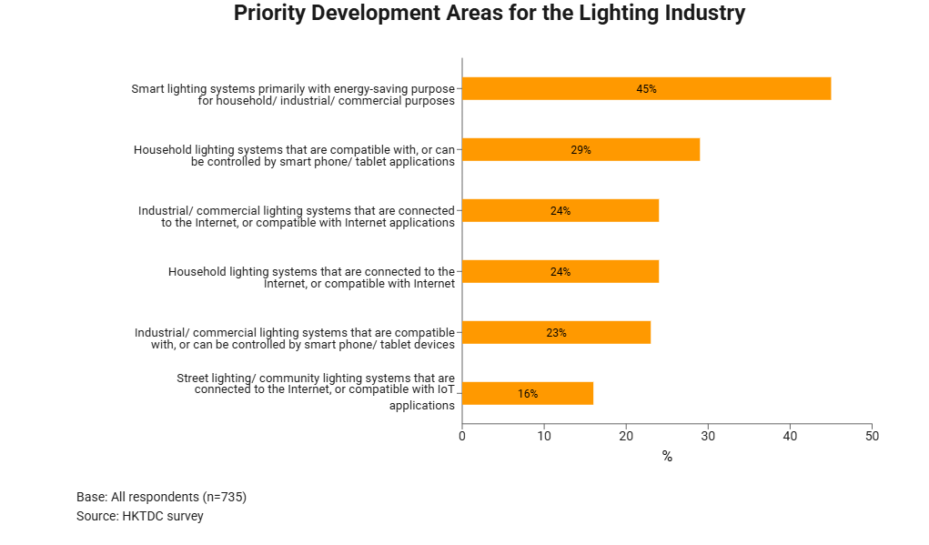 Lighting traders were overall positive about the industry outlook. They believed smart lighting systems will have the most growth potential among various product categories, and considered emerging economies such as ASEAN and Middle East markets as their next target customers.