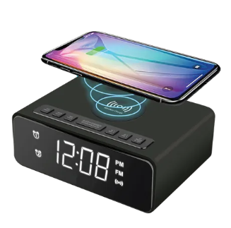 Blending utility and convenience, this device is more than just an alarm clock. It features a clear 0.9” LED display, dual alarms with snooze, and a wireless 5W charging pad for your smartphone. Backup battery support ensures you never miss an alarm, and its compact design fits perfectly on any nightstand.