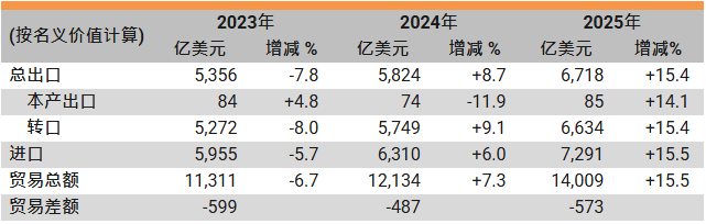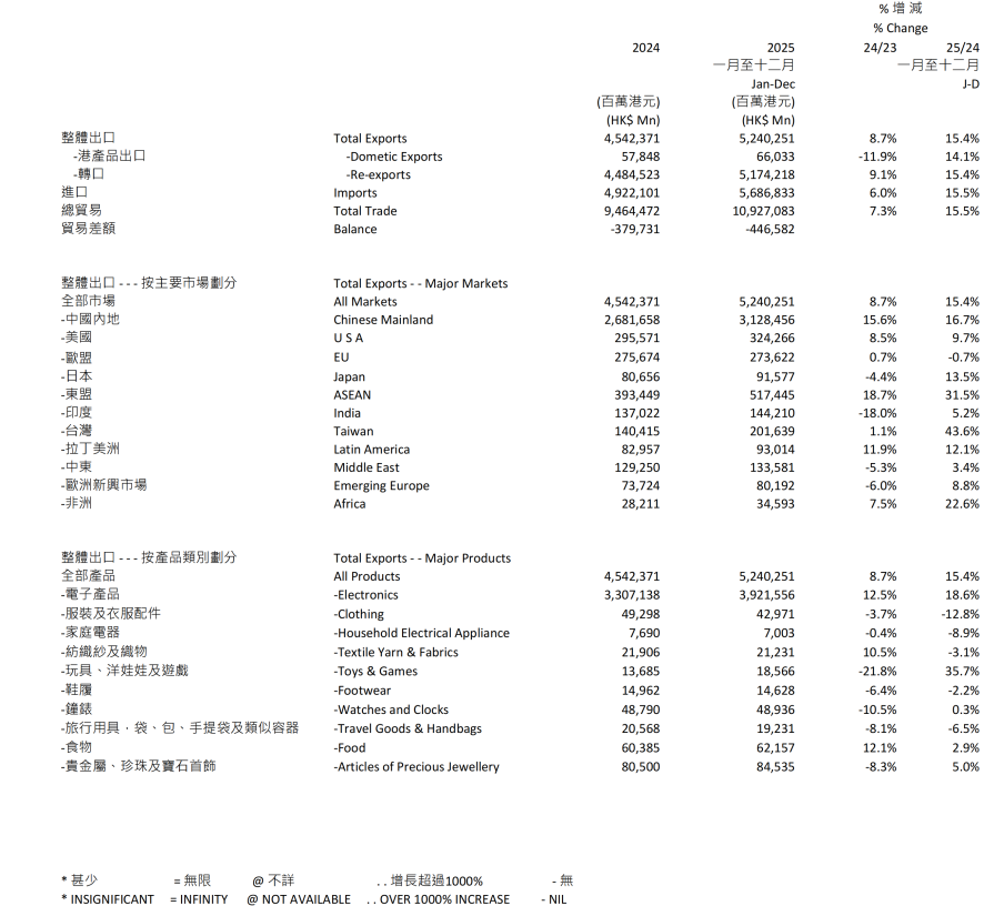 - 2025年全年整体货物出口货值按年上升4%。