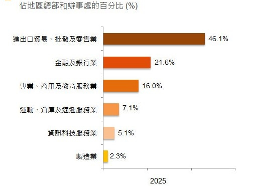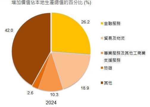 - 香港是全球服务业主导程度最高的经济体之一,2023年,香港服务业占本地生产总值5%;