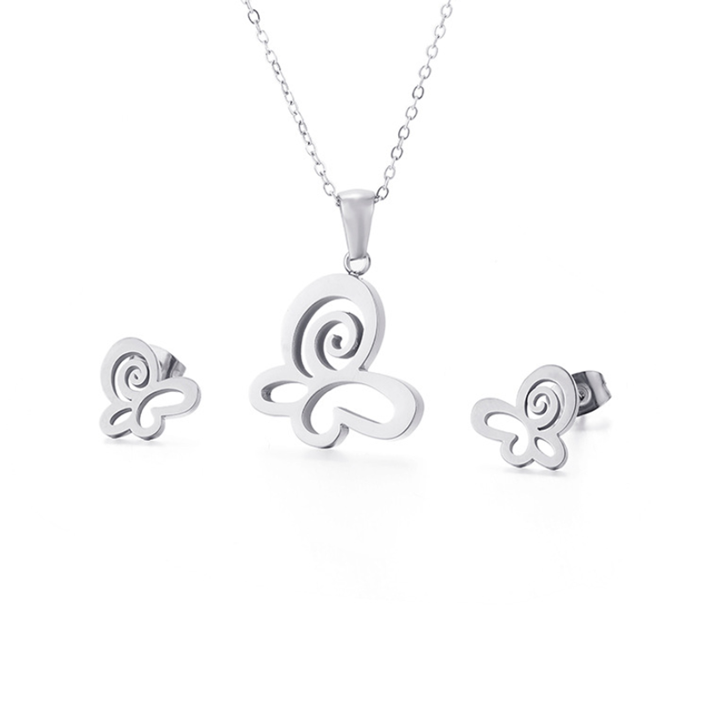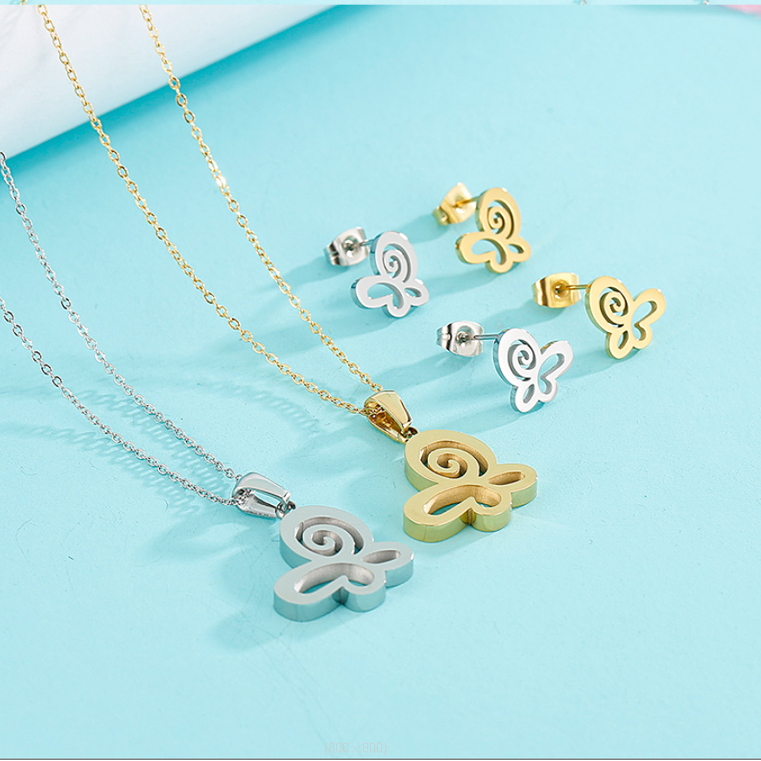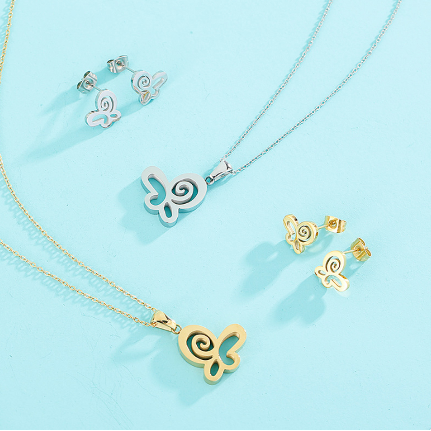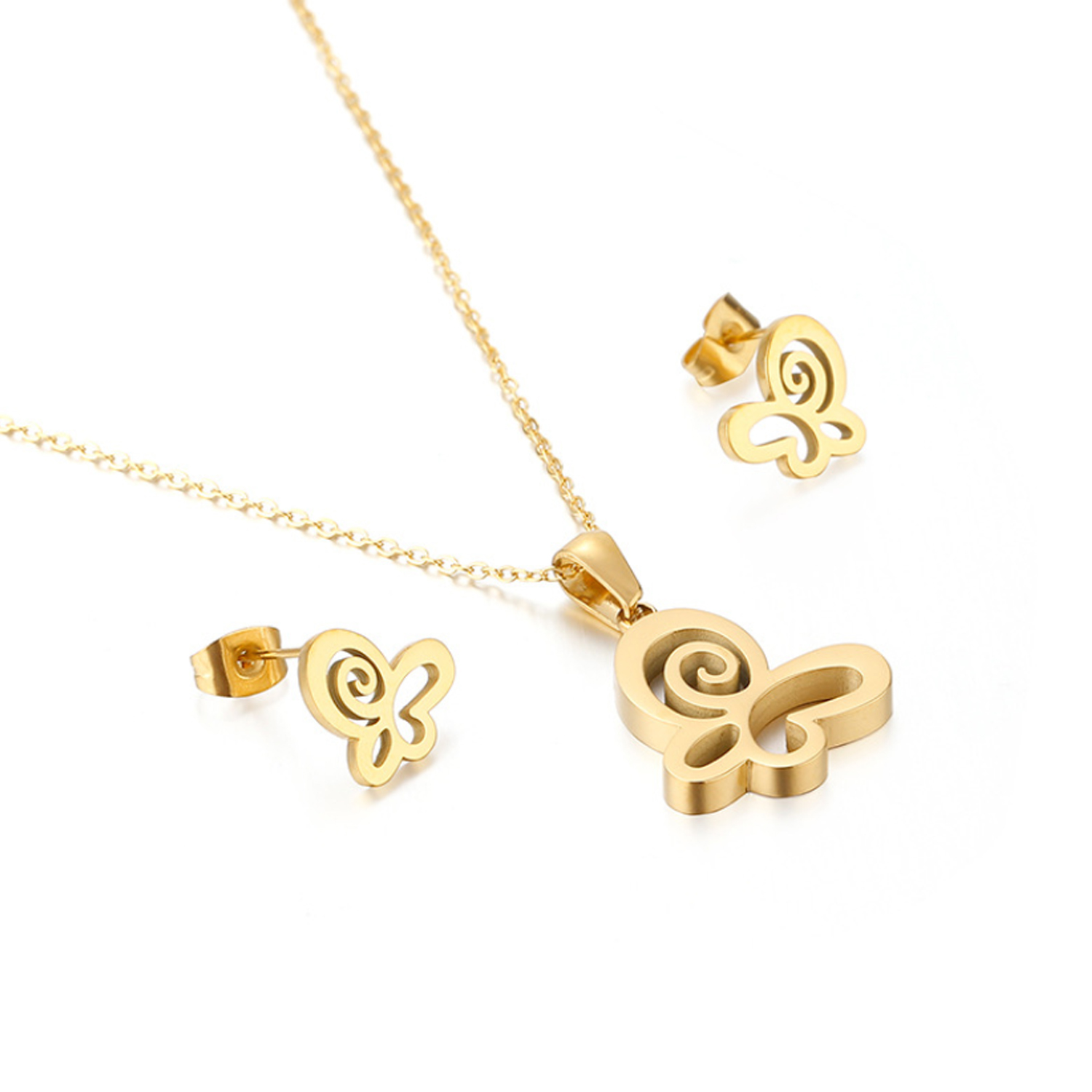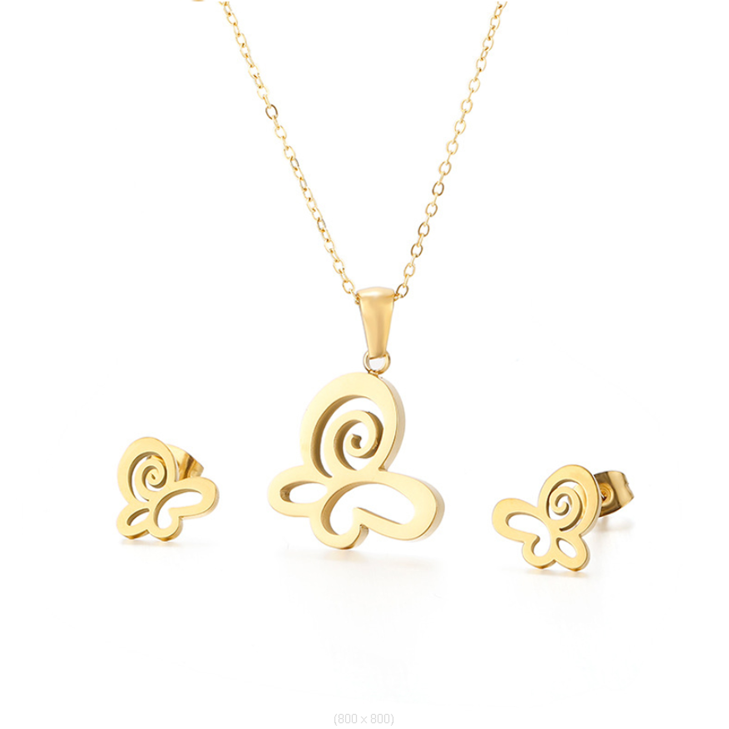 18K Gold Plated Stainless Steel butterfly shape Necklace Earrings Set