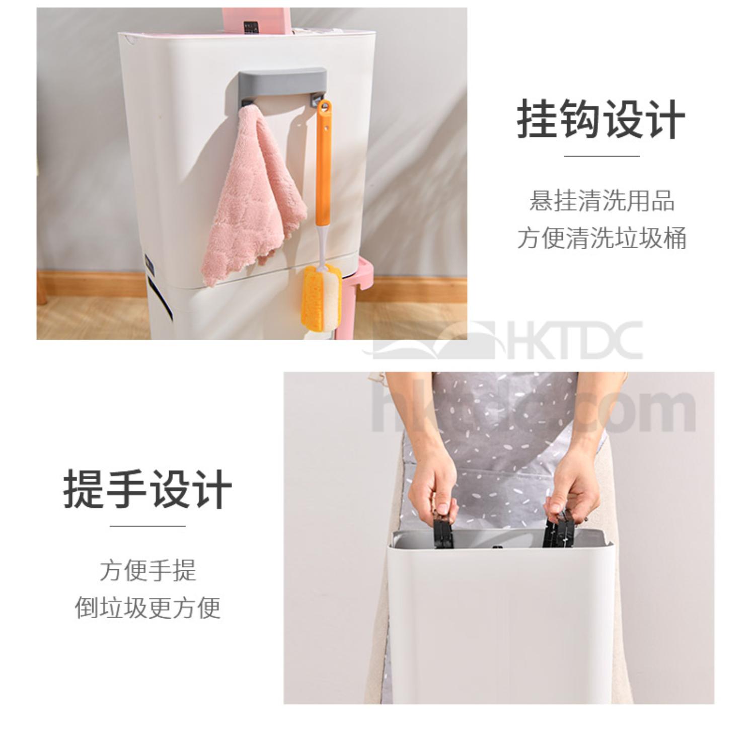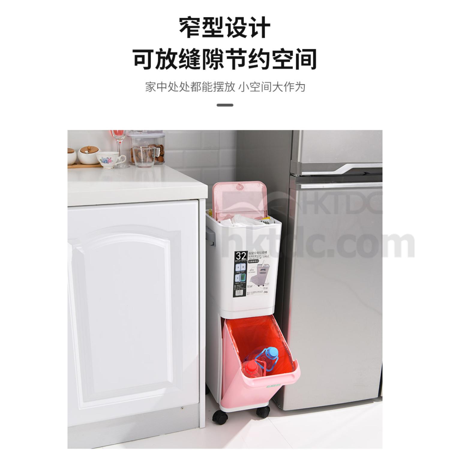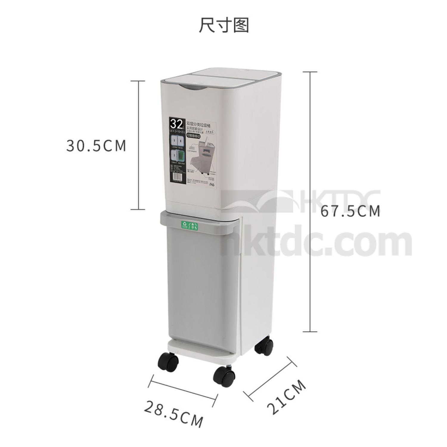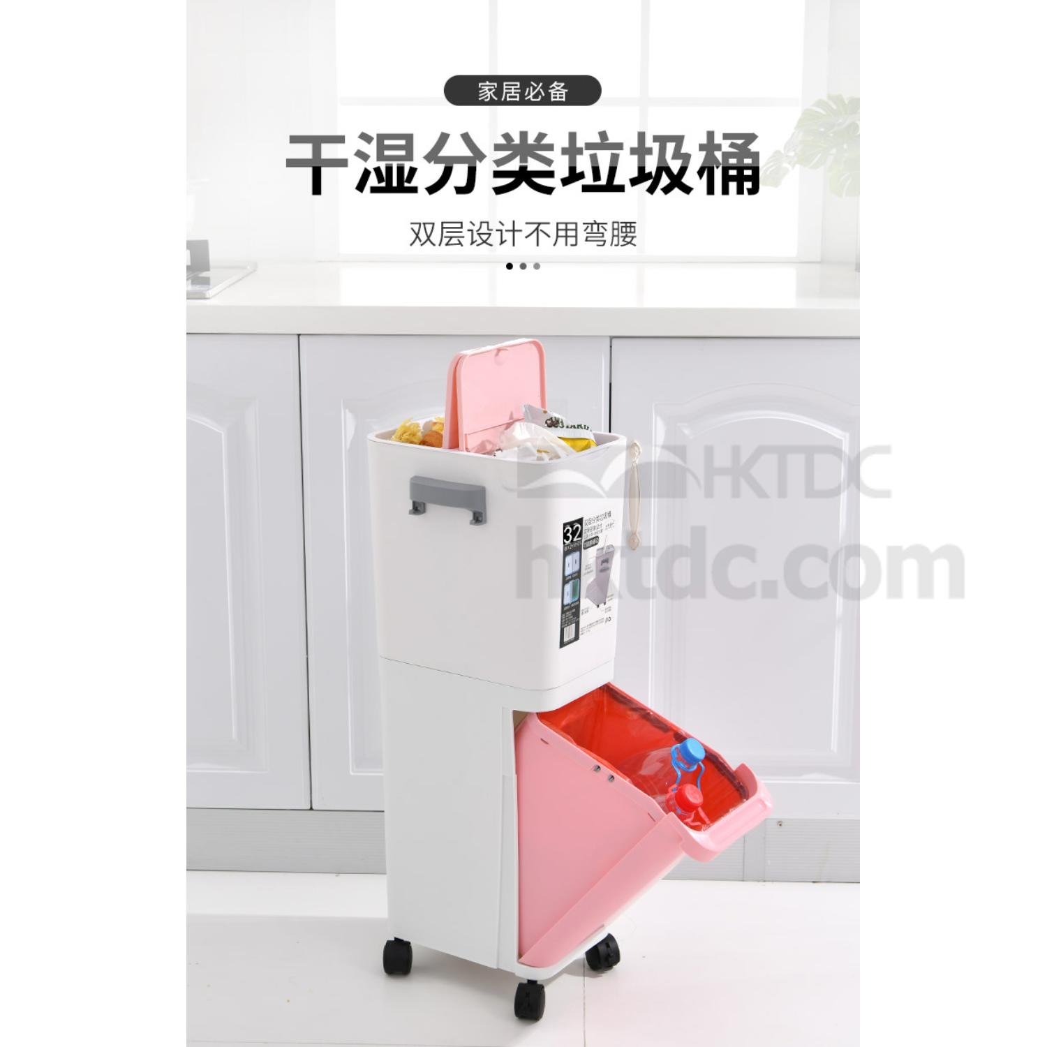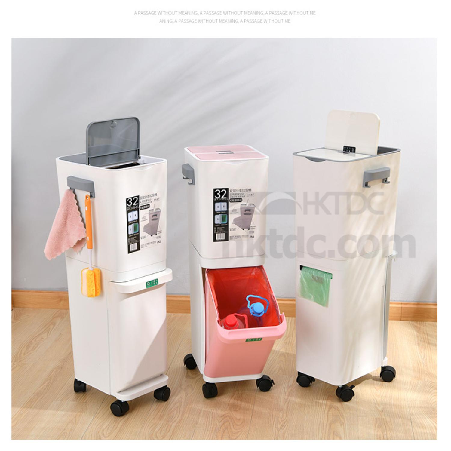 This is a sorting trash bin, two caps with pressed design, the upper layer can be used alone, can put the Dry Garage and Recoverable.