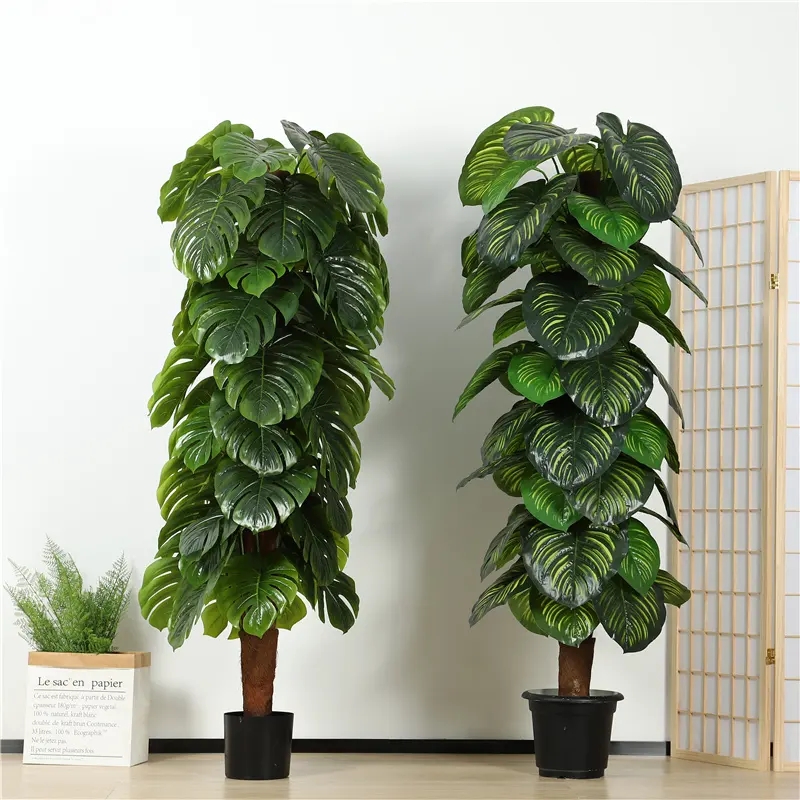 Wholesale Greenery Plants Artificial Monstera Taro Tree With Brown Stem Decor For Indoor Outdoor Plants