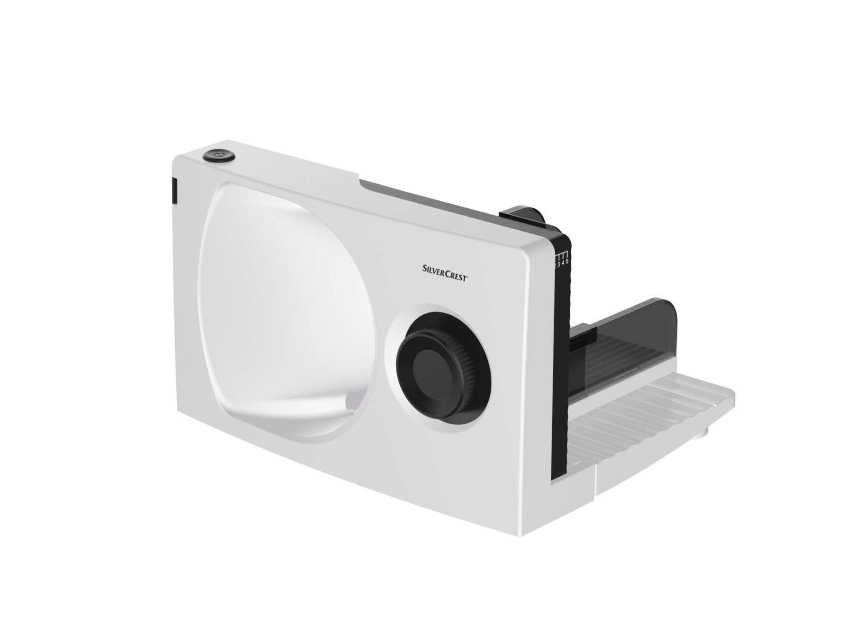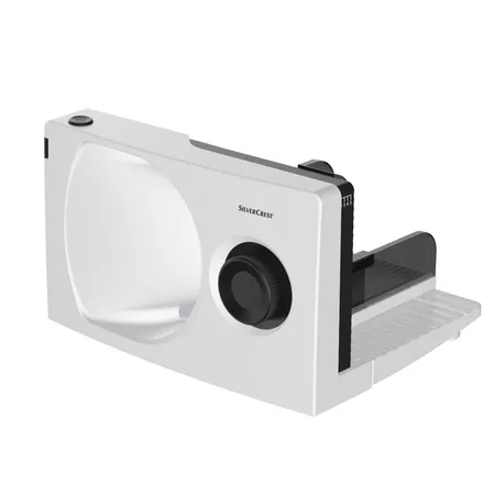 Detachable Chinese Stainless Steel Blade (Diameter = 170mm, wave shape) DC motor Turning knob for 0-15mm slicing width adjustment Plastic body Double Safety and On/Off Switch Detachable Sliding Food Carriage with Thumb guard and Food Pusher Foldable Platform Cable Winder Underneath Non-slip feet and Suction Feet 220-240V ~ 50/60Hz 100W GS/CE approval