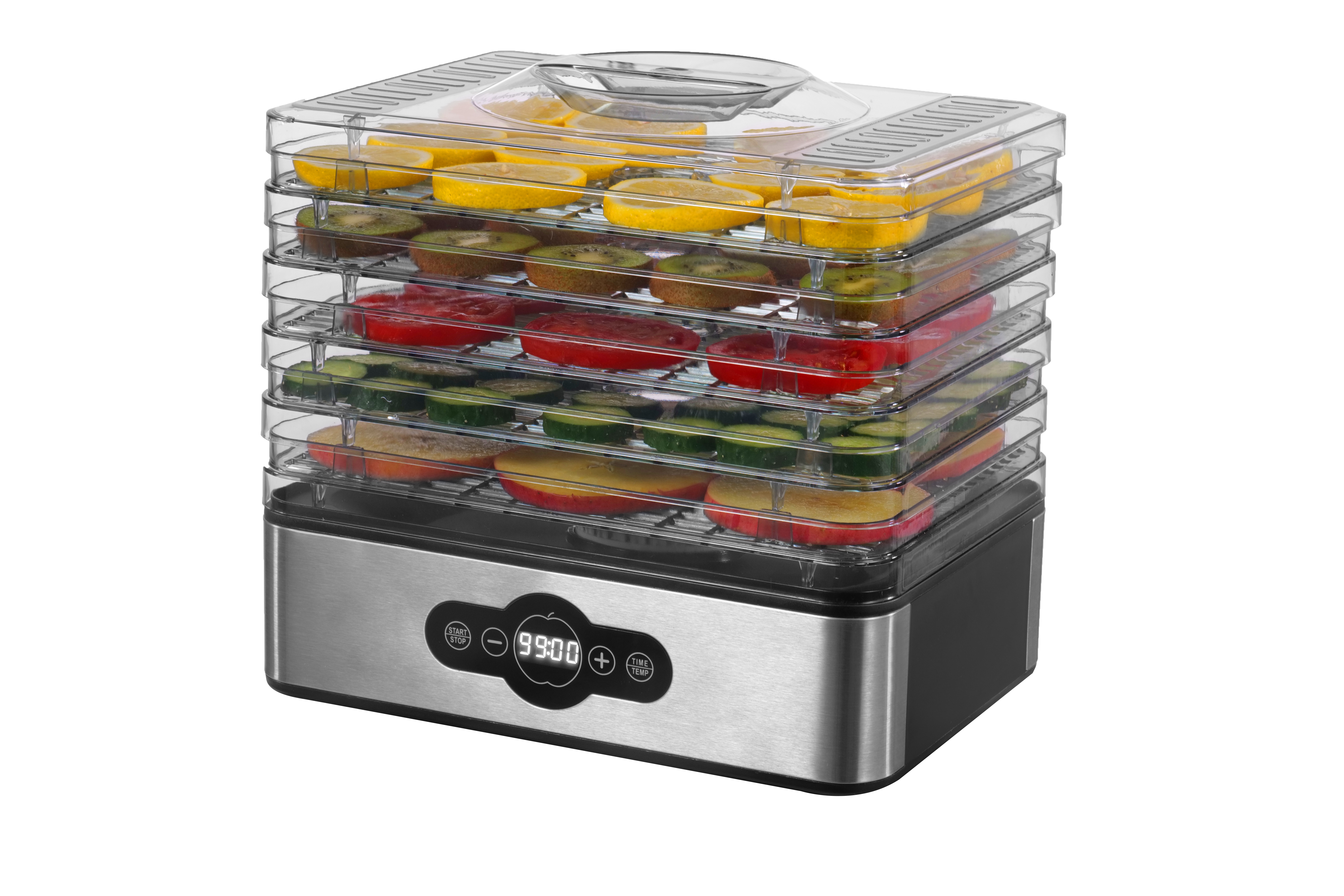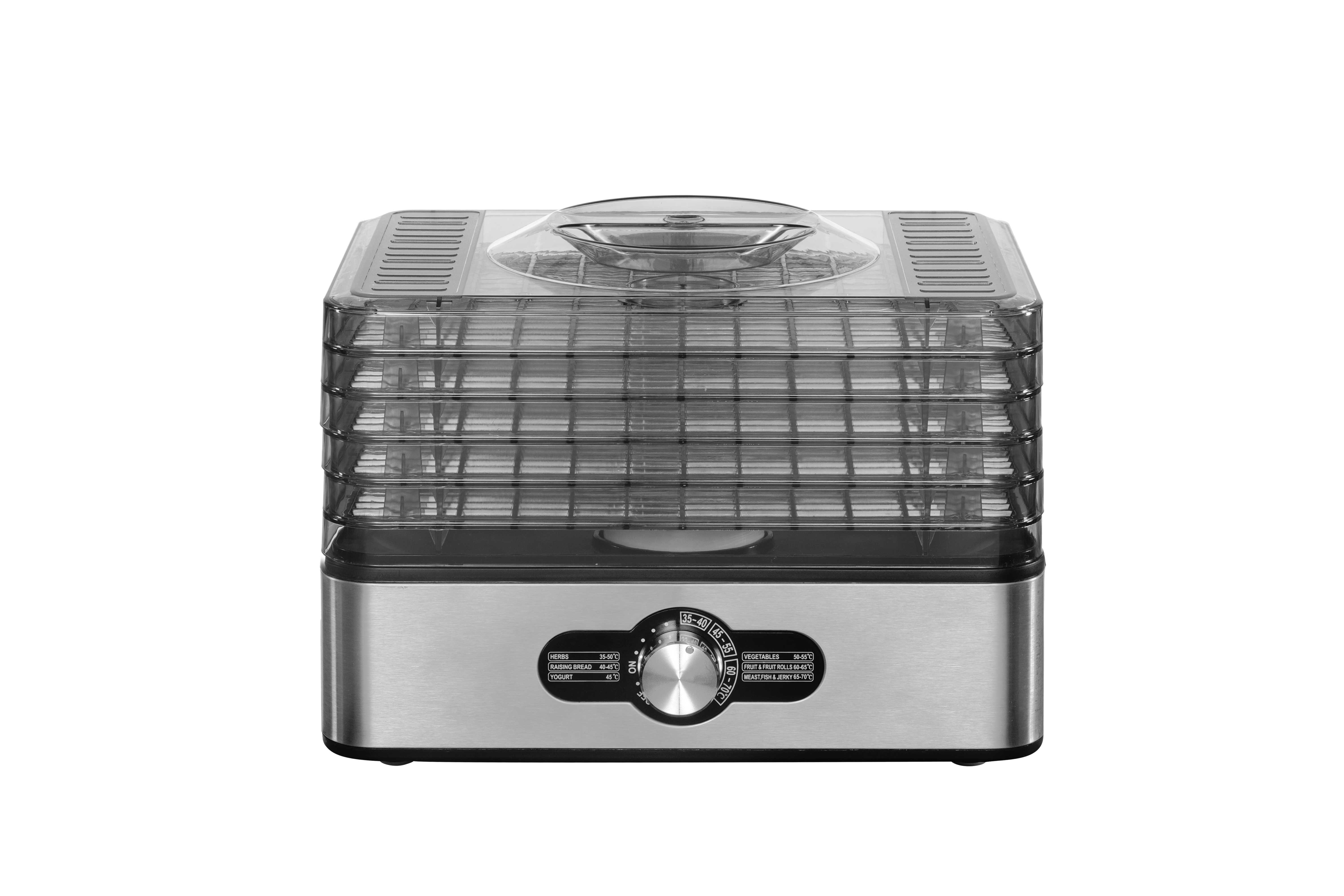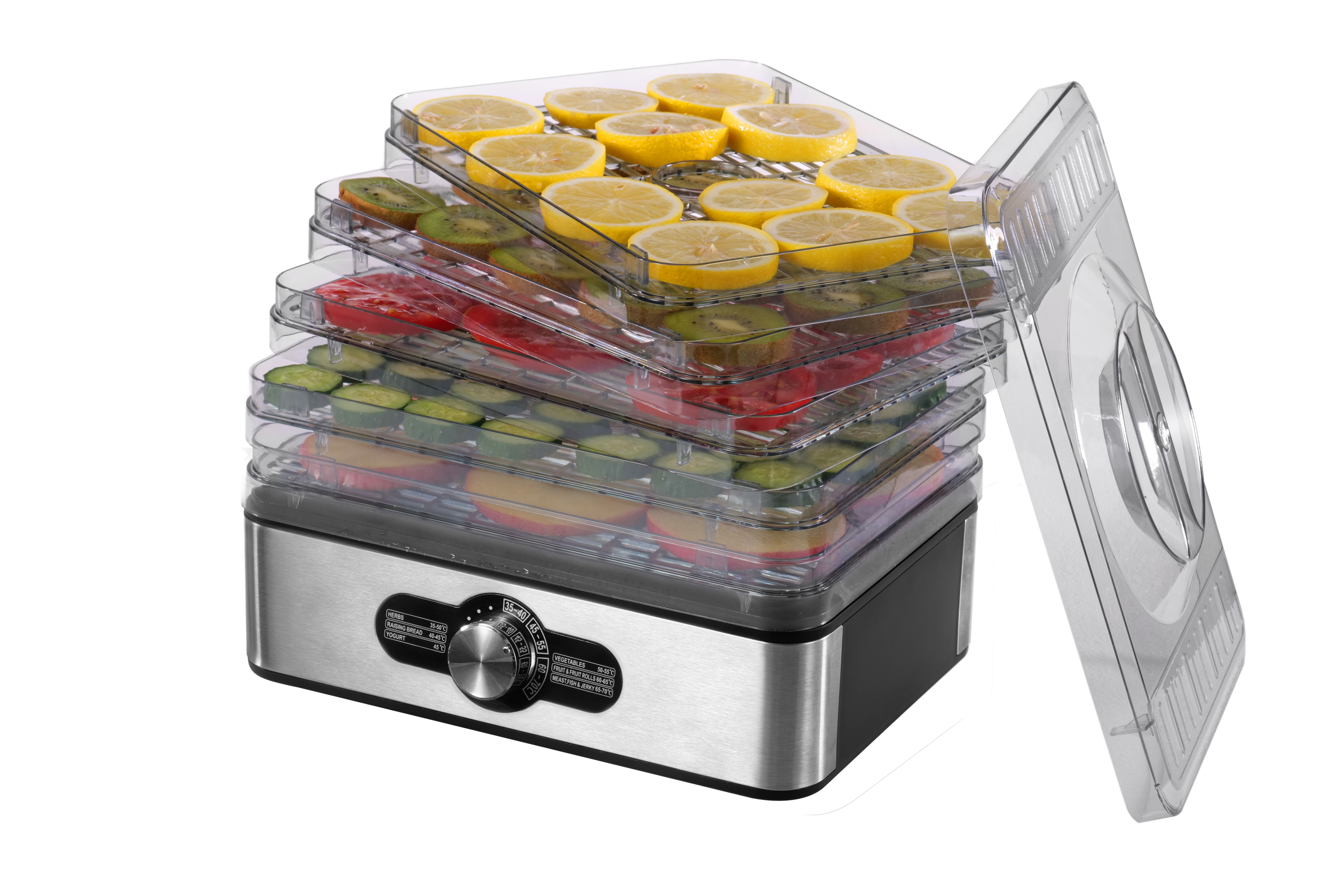2) 5 see-through trays with adjustable heights (high position and low position)