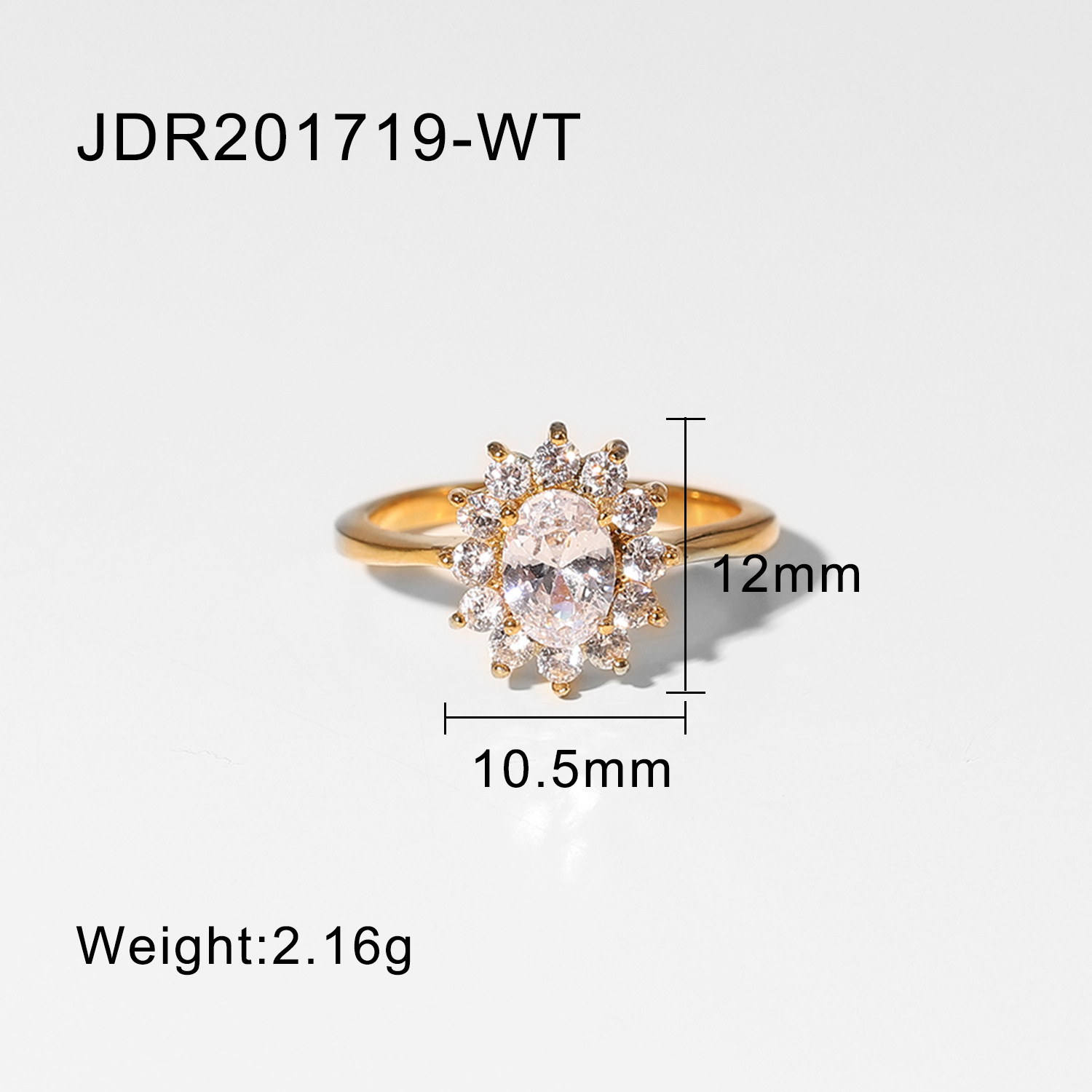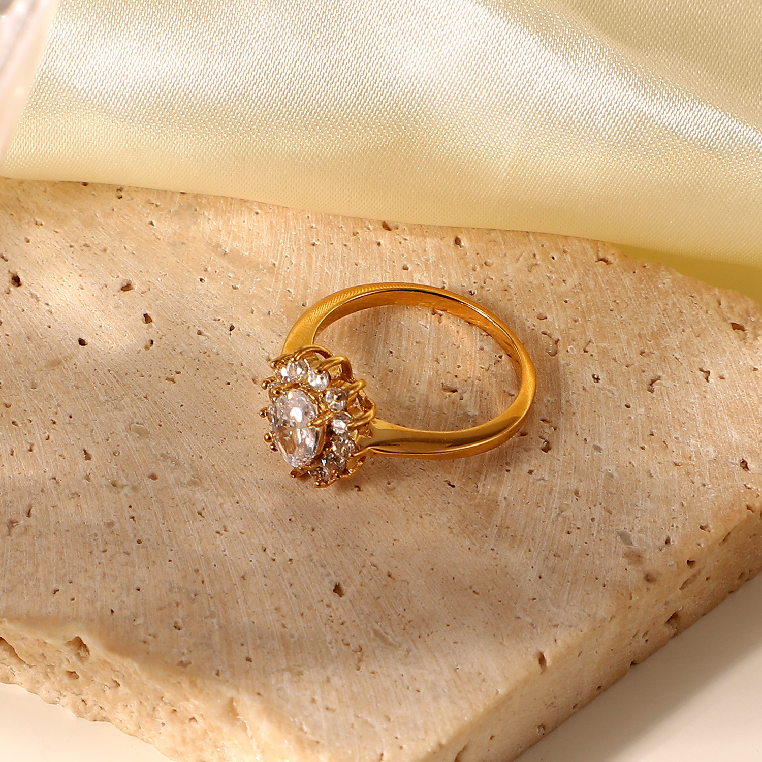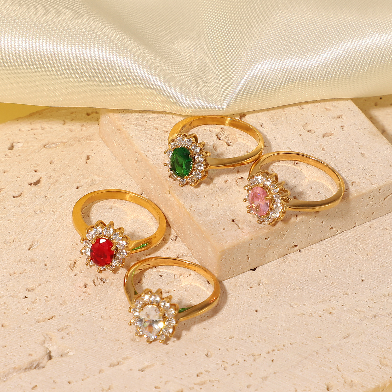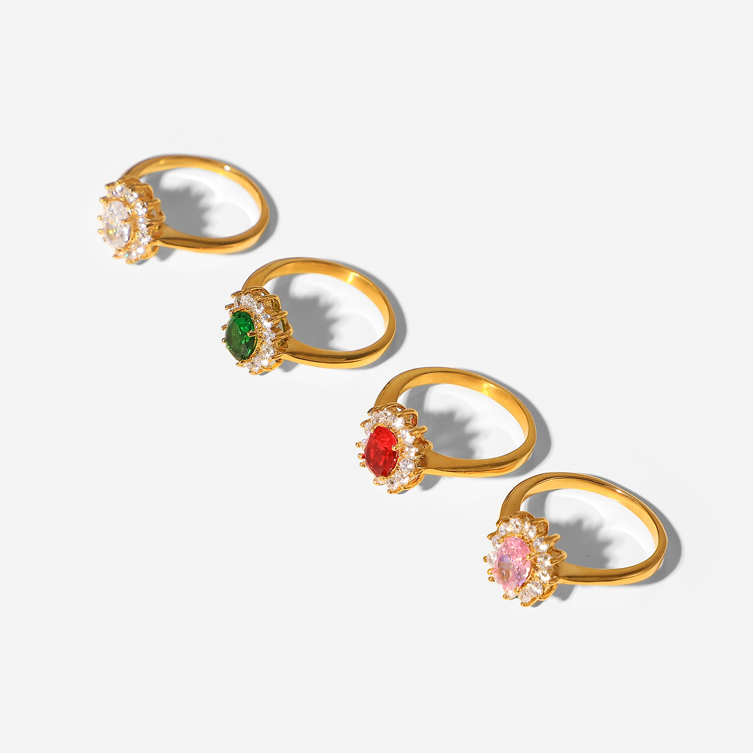 Hot selling zircon ring vintage fashionable stainless steel plated with 18K gold ring red white green pink red zircon ring