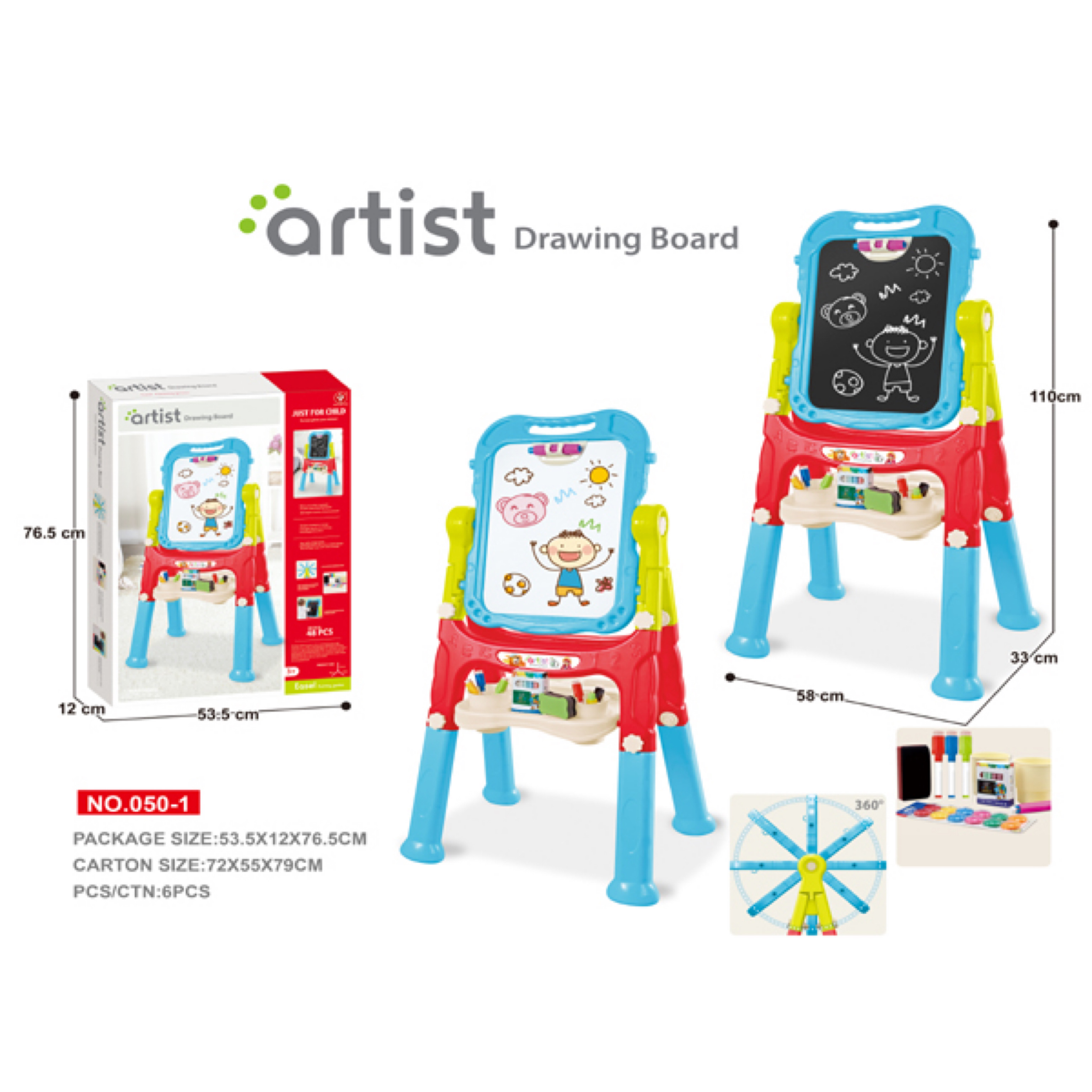 Kids Easel for Two, Adjustable Double Sided Art Easel Chalkboard and Magnetic Dry Erase Board with Kids Art Supplies Accessories