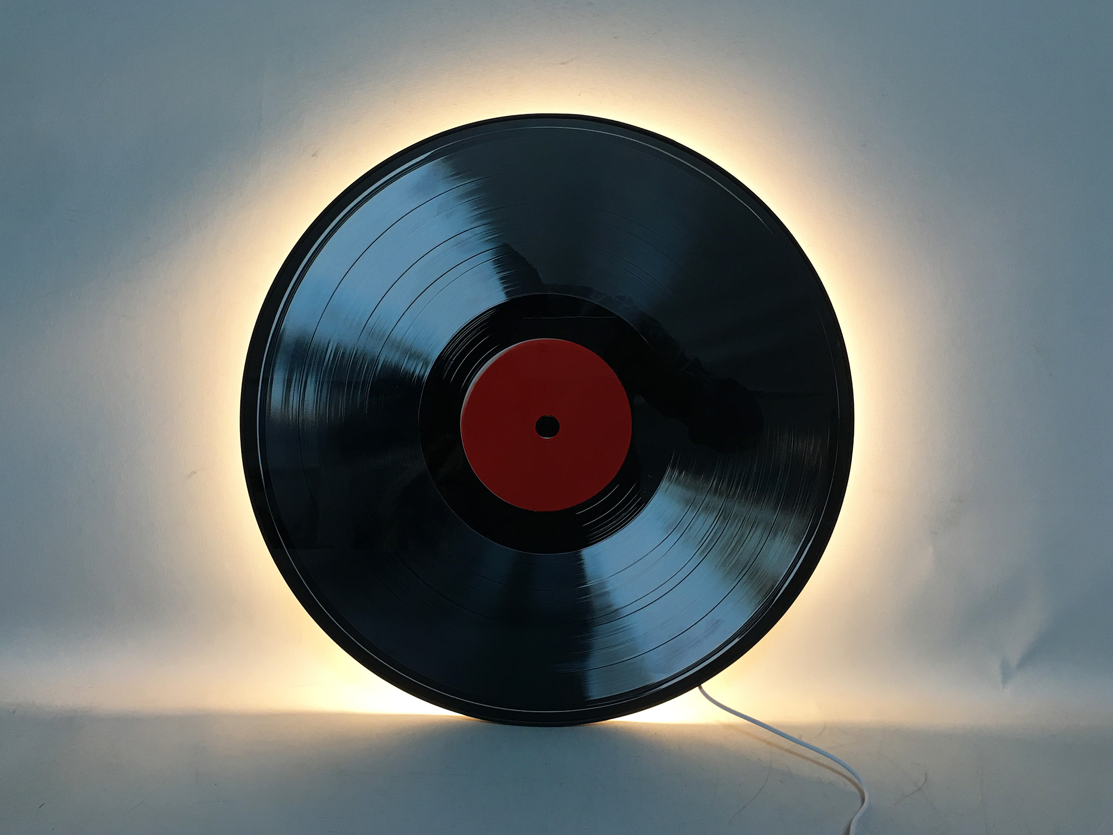 High-gloss lacquer embellished Neon Led Wall Art - Black Vinyl Record