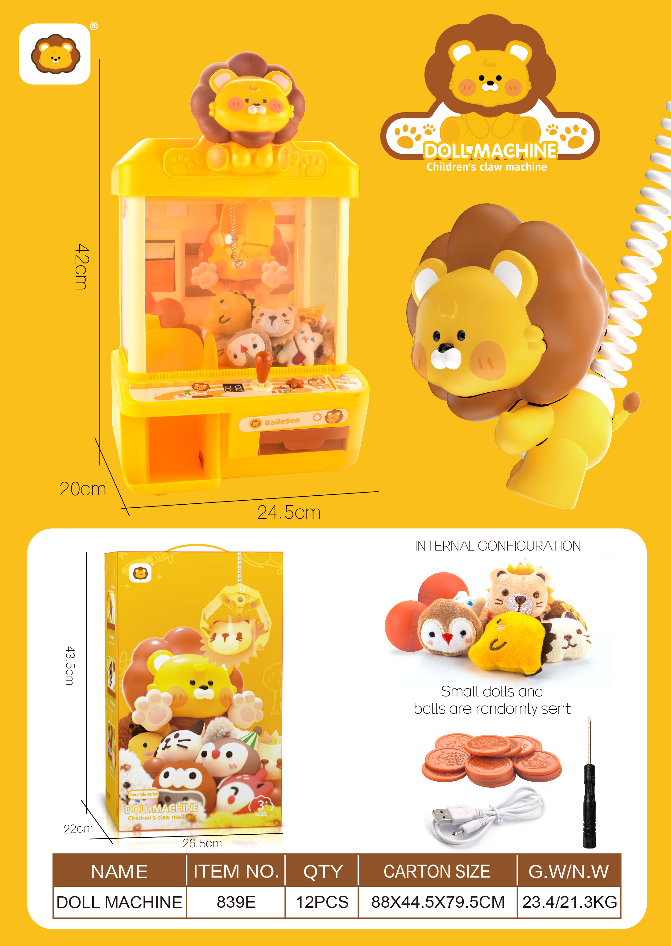 Toy Doll Mini Catch Machine House Candy Catcher Grabber Claw Arcade Crane Game Automatic Vending Kit USB Music Light Kids Gift
