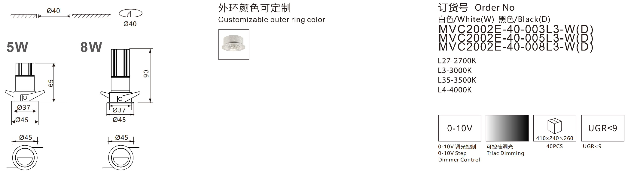 功率: 3W/5W/8W色温: 2700K/3000K/3500K/4000K/5000K光束角: 45°