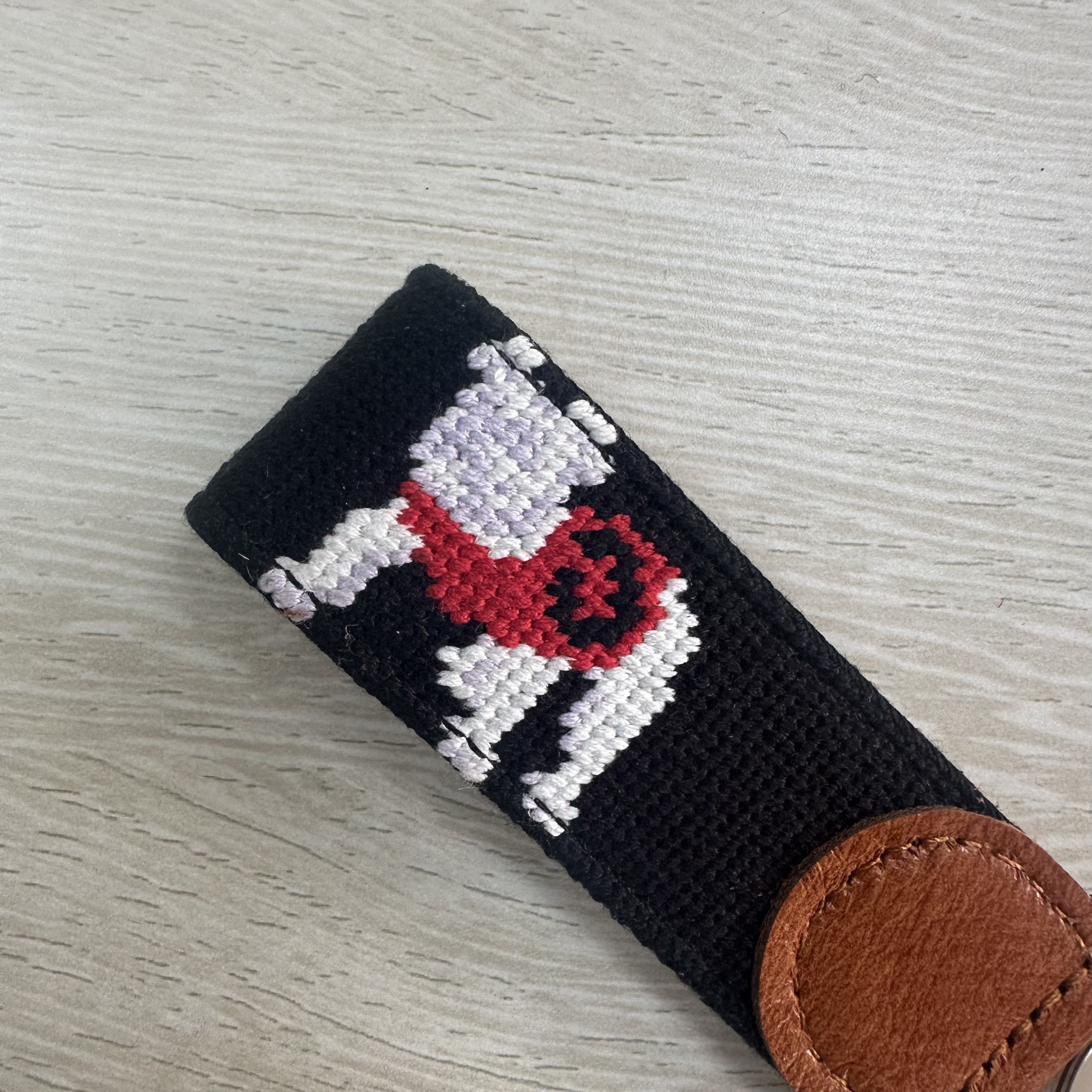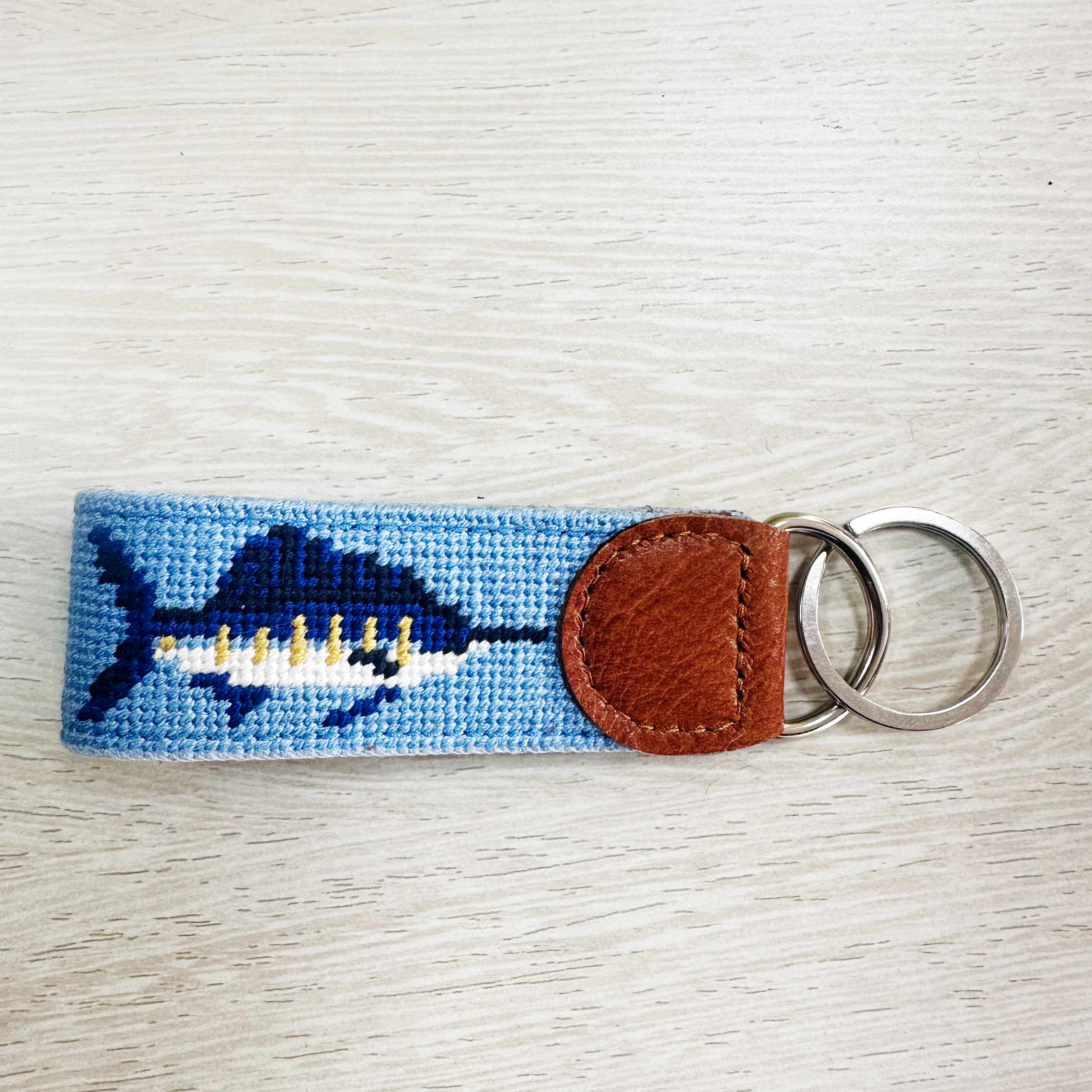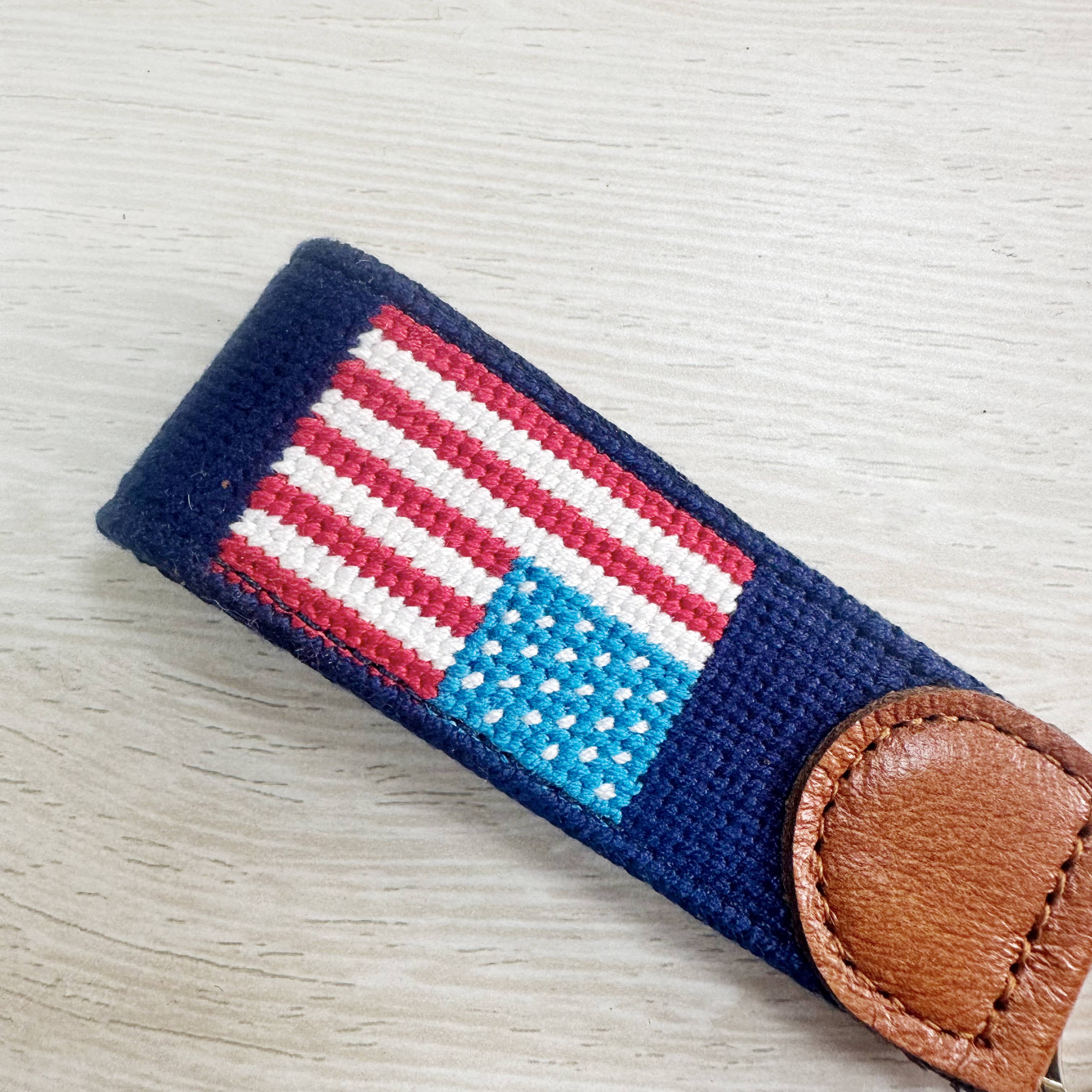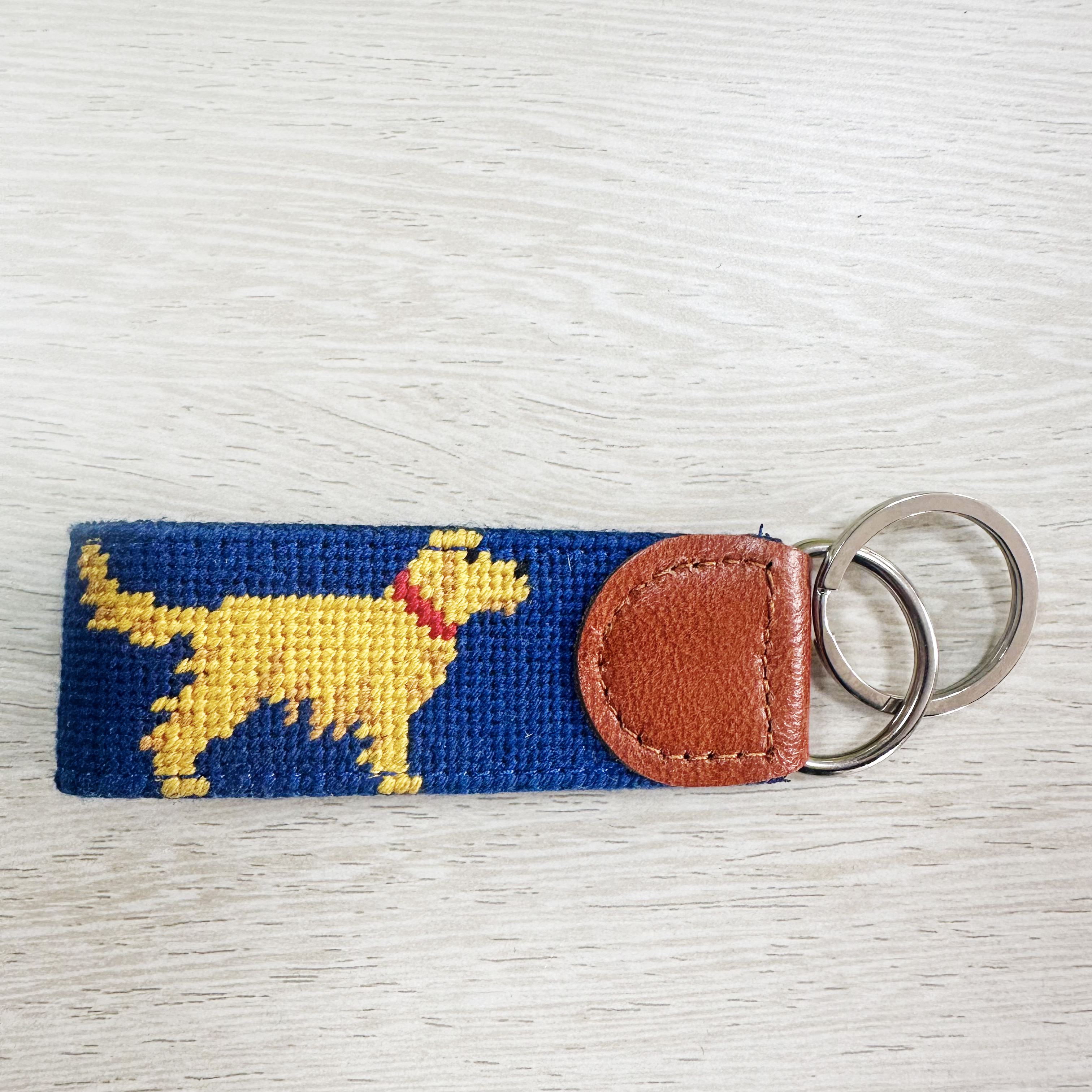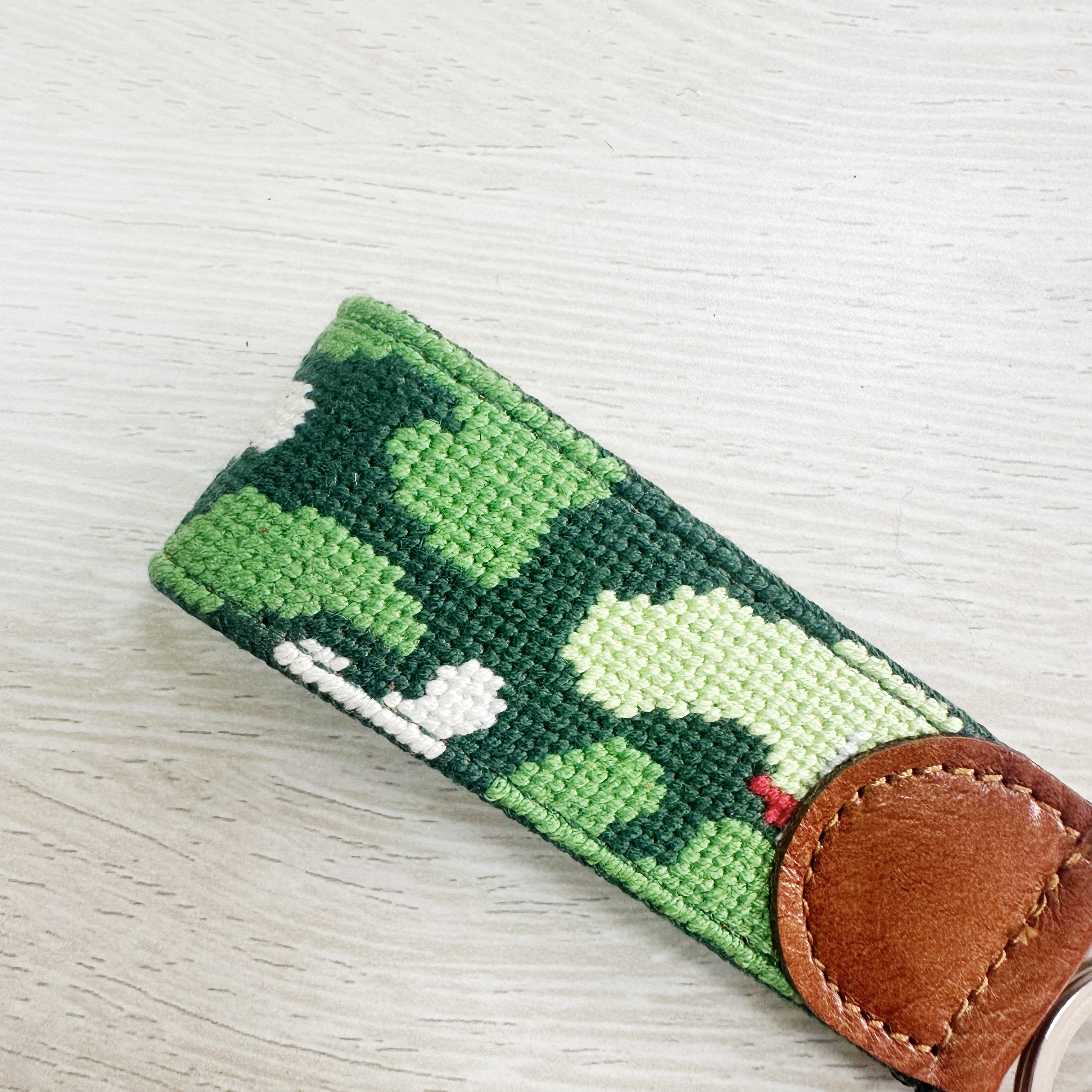 Crafted with attention to detail, this collection of needlepoint keychains blends timeless craftsmanship with modern design. Finished with genuine leather and sturdy hardware, they are designed to elevate your everyday essentials.