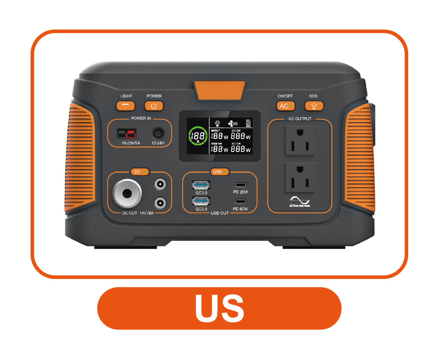 PV Input: 18V~23V 5A, 60W Max. Output Wave :Pure sine wave