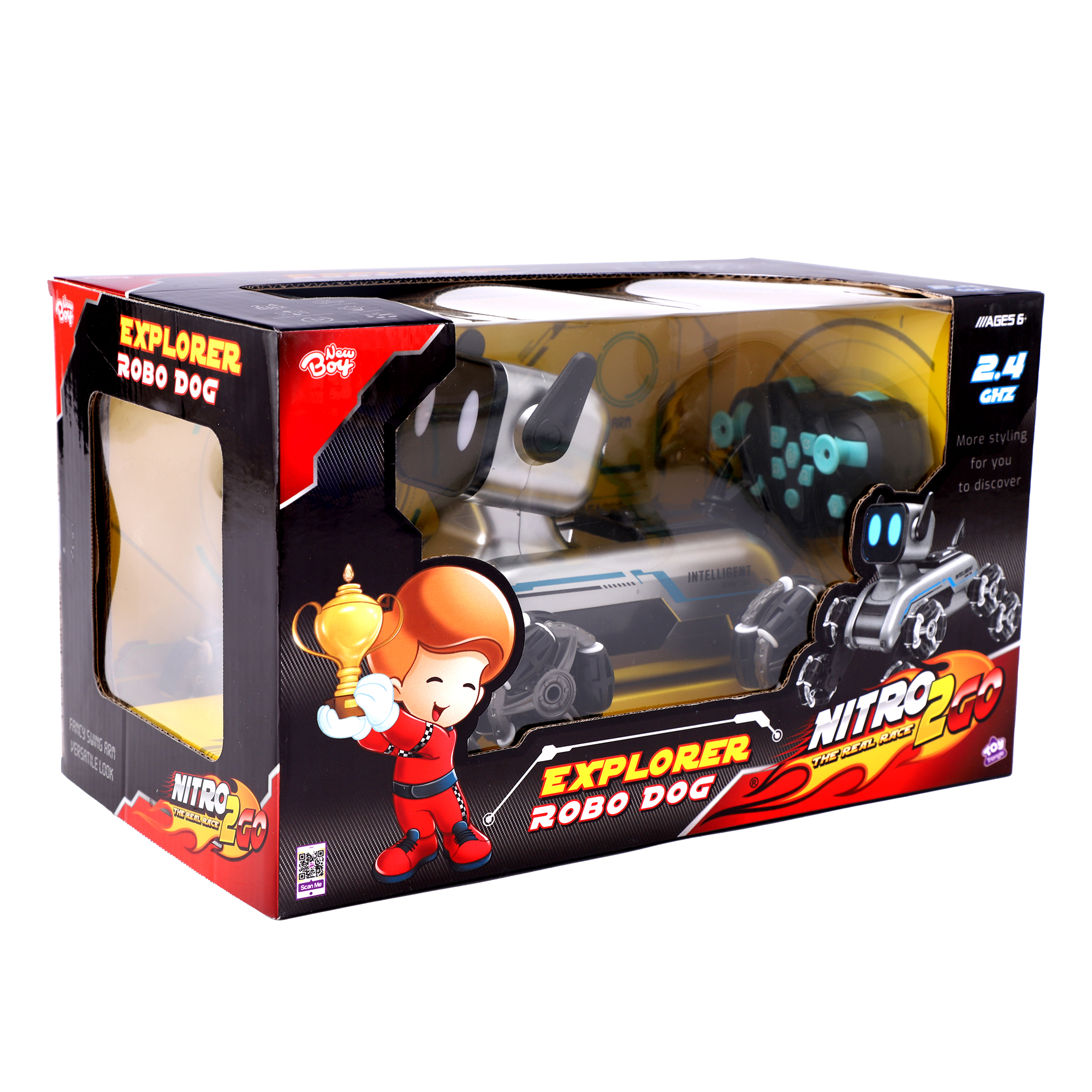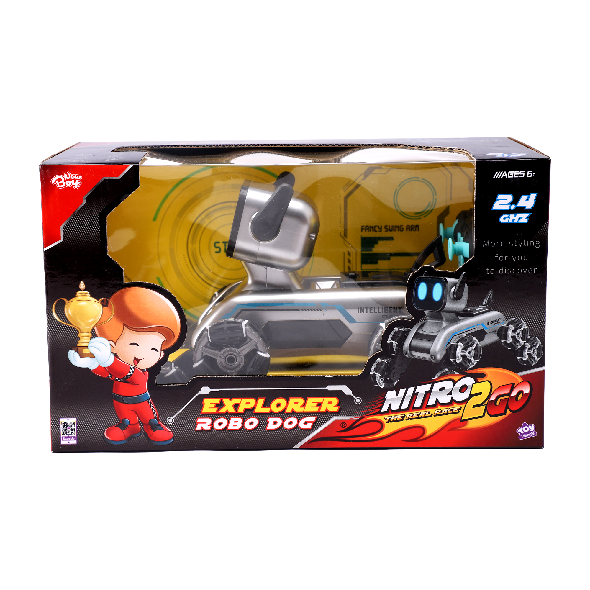 The 2.4GHz R/C Explorer Robot Dog is an innovative and fun-filled robotic companion, offering dynamic movement and advanced features. With Mecanum wheels for smooth, multidirectional motion, this robot dog delivers a lifelike experience with multiple walking angles, cool lighting, and a fancy swing arm. The one-key demonstration function and built-in music make it an engaging toy for both kids and tech enthusiasts, providing endless entertainment in a versatile and interactive package.