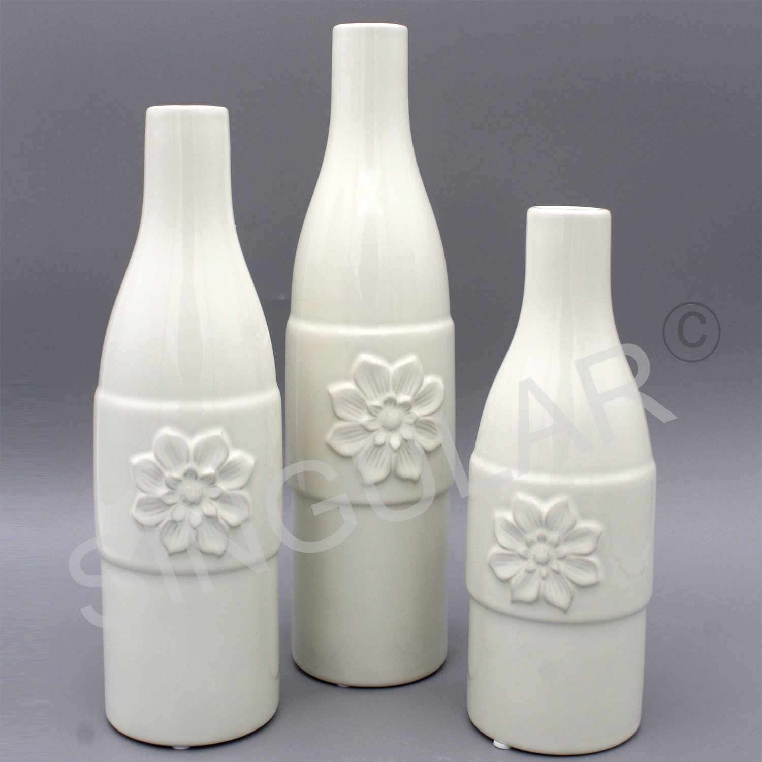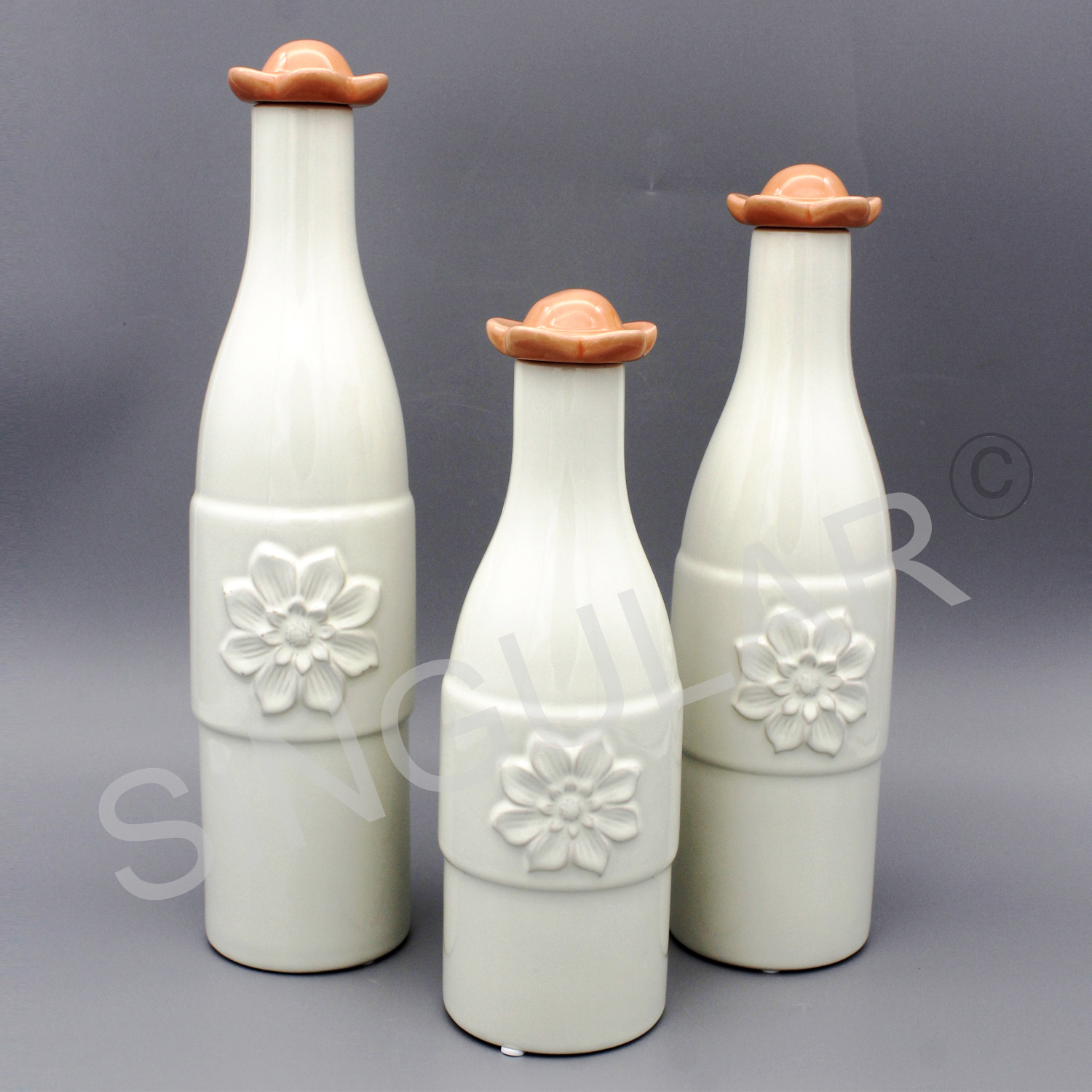 Round bottle with flower top vase set