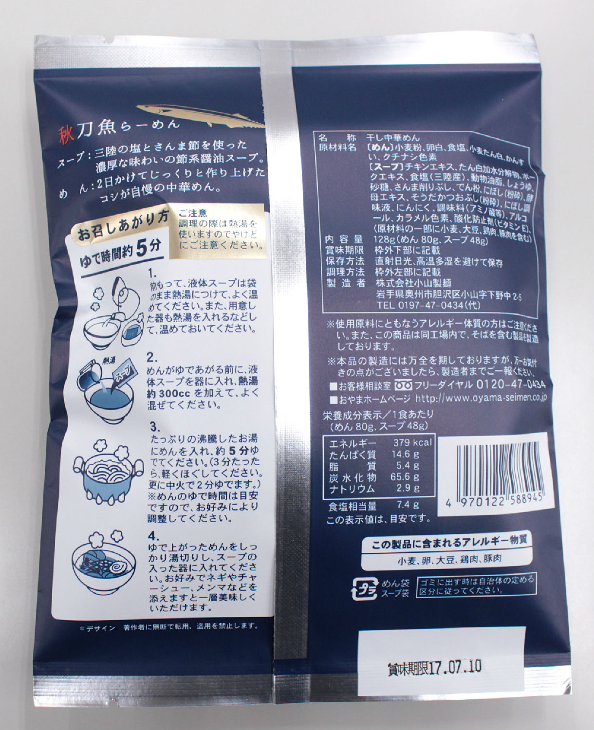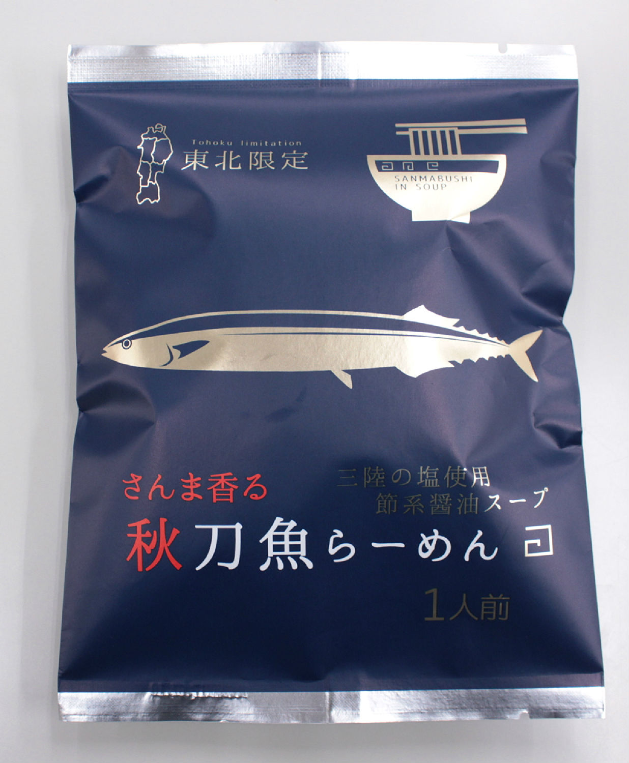 This is soysauce-based ramen with rich flavour of pacific saury.