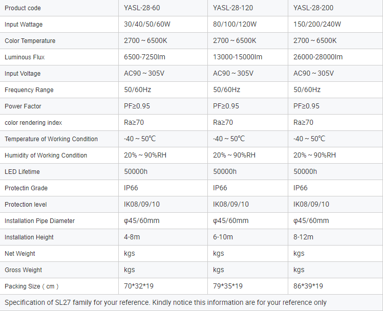 This fixture is mounted on a 4-8m in pole. lnstalling Ways Both Horizontal and Vertical available and adjustable angle-15°to+15°