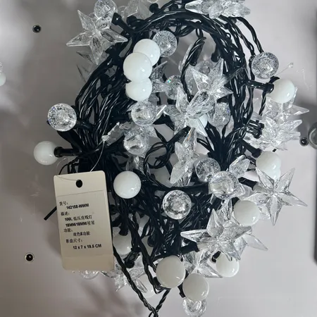 LV Outdoor String light(dual colour)+ 5MM LED +(Mixed covers arranged at intervals) φ14MM white bulb + G20T + φ14MM white bulb + 18MM bubble ball + φ14MM white bulb + bubble five-pointed star+24V 3.6W transformer (8 functions)