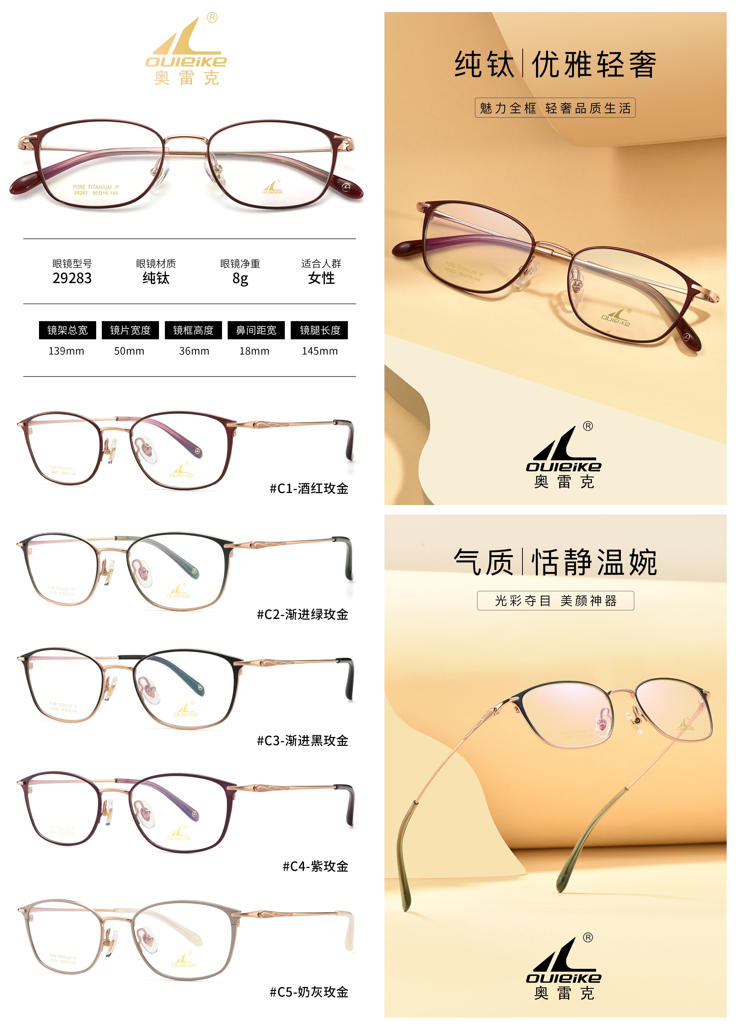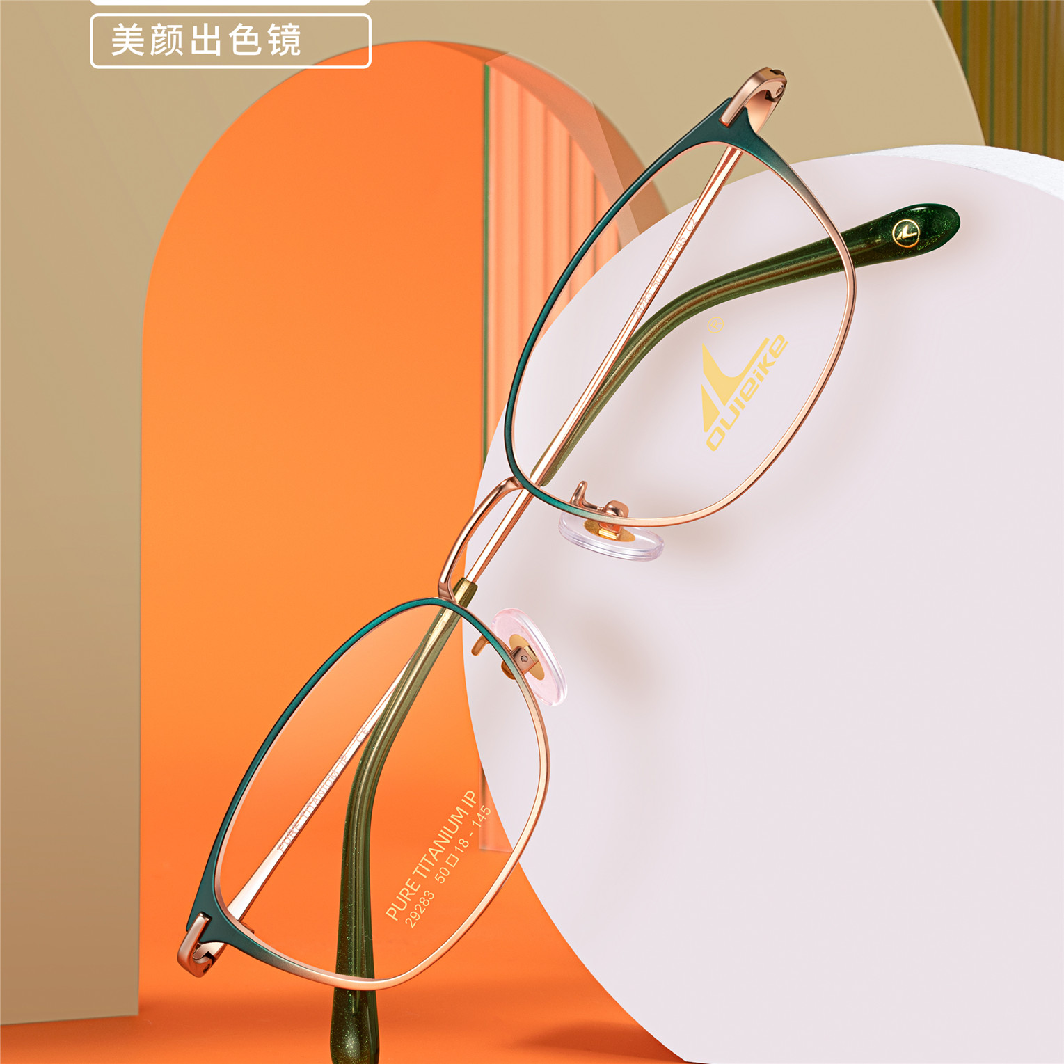 OULEIKE eyewear pure titanium optical glasses frames are lightweight, causing minimal pressure on the nose and ears for enhanced comfort. They're hypoallergenic and suitable for high-power lenses due to their light weight. The IP plating is durable and won't peel off over time. Overall, pure titanium frames are popular for their lightweightness, corrosion resistance, biocompatibility, and variety of styles.