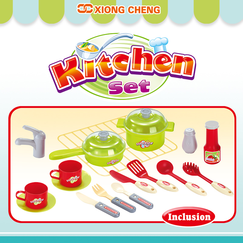 The set also includes various pots, pans, plates, and cutlery made from safe, non-toxic materials. These are sized perfectly for kids to handle easily as they imitate their parents or favorite chefs in the kitchen. Colorful and attractively designed, it may feature fun patterns or bright hues that appeal to children's eyes.