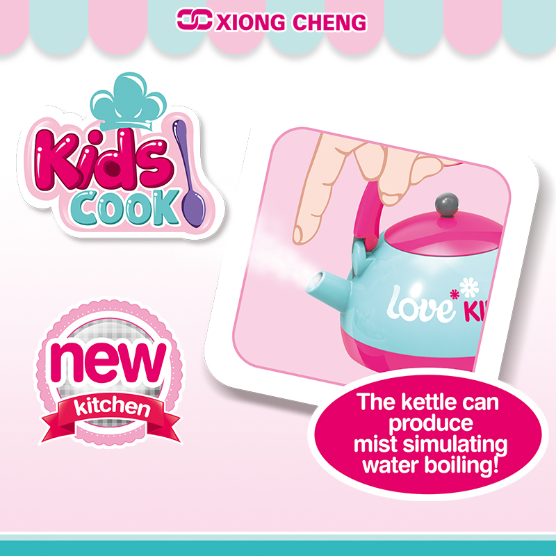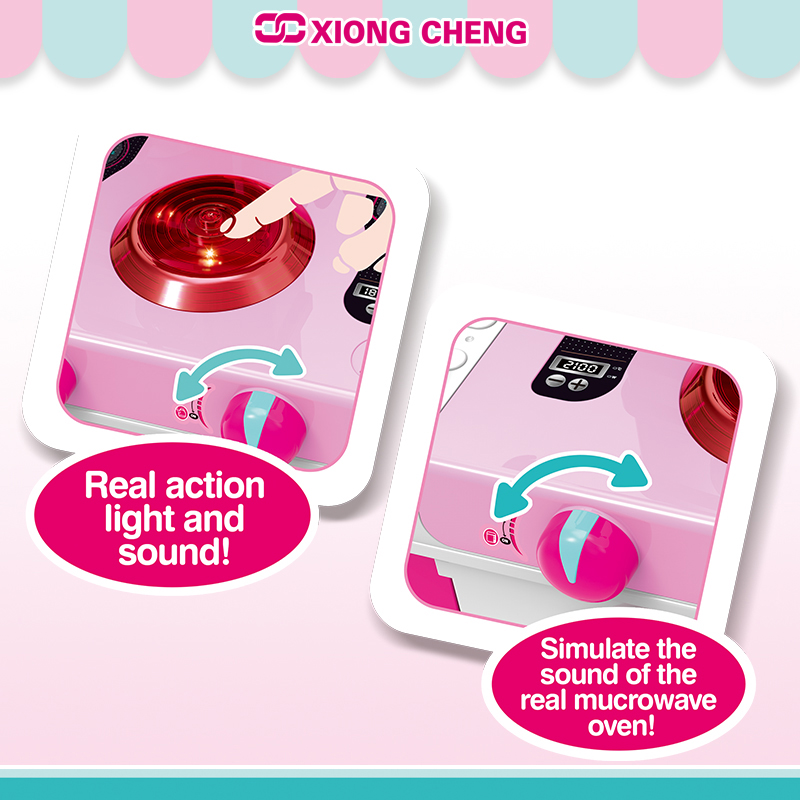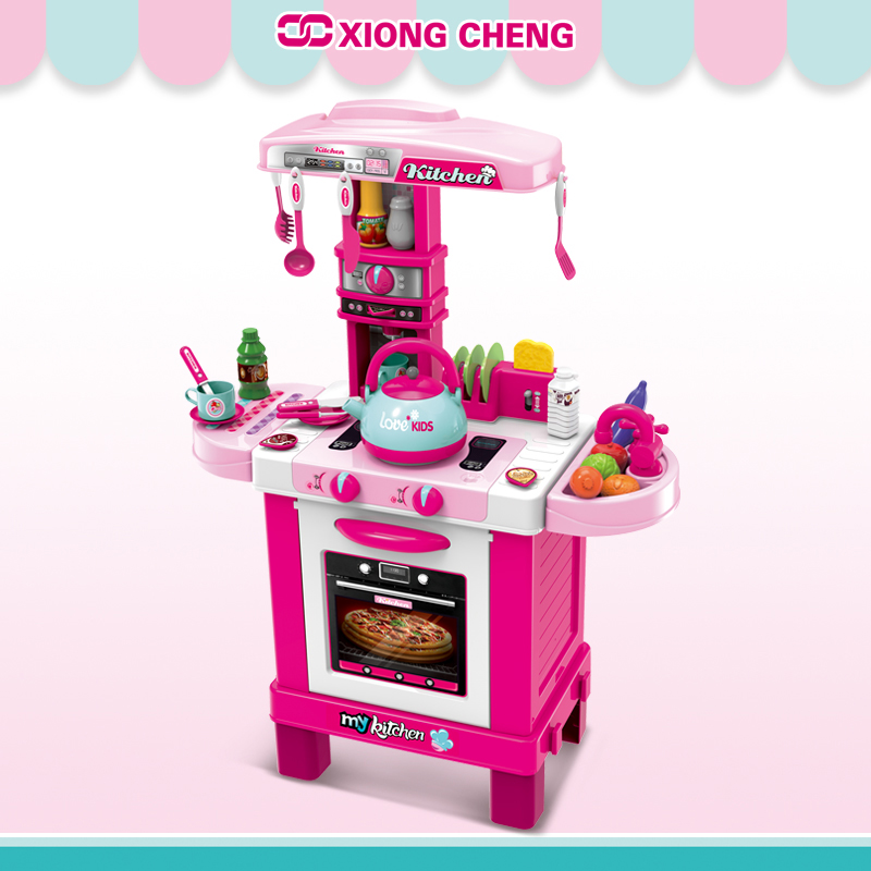 To enhance the play experience, the set also comes with a variety of play food items. These include plastic fruits, vegetables, meats, and baked goods, all painted with vivid colors to look appetizing. There are also condiment bottles, plates, cups, and cutlery, allowing your child to set the table and serve a complete meal.