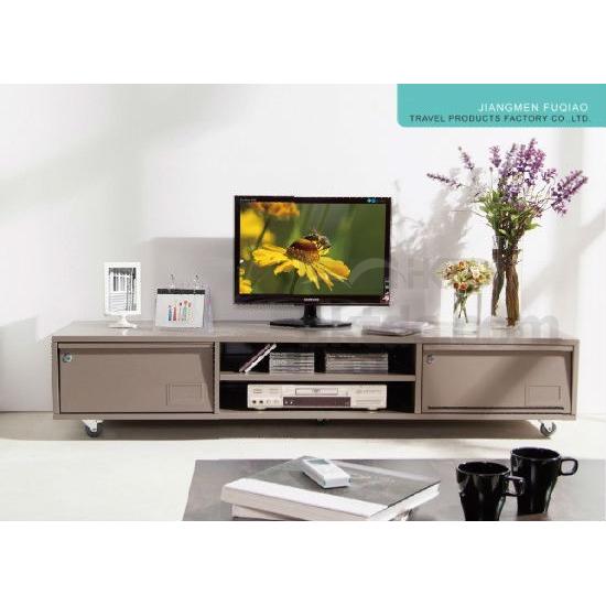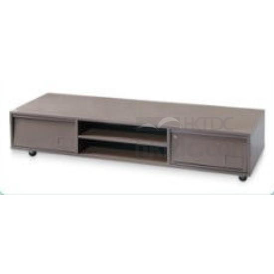 This contemporary TV stand accommodates any plasma TV. The metal stand features stylish, modern look. The 2 shelves and 2 drawers help keep your multimedia devices, music and movies organized.