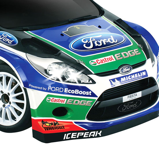 Licensed by FORD MOTOR COMPANY. Iconic rally liveries and decals. Replica car driven by Jari-Matti Latvala & Mikki Anttila.