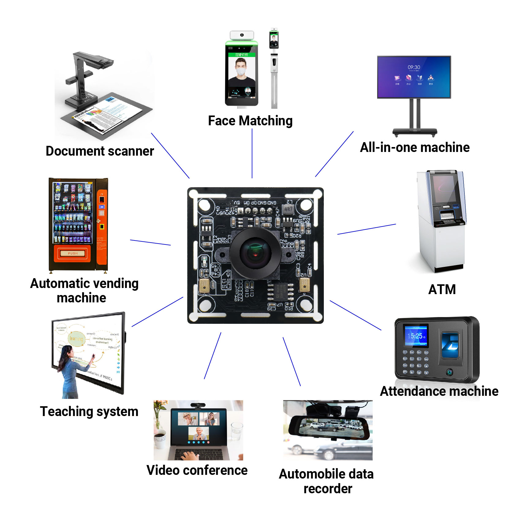 Widely use for applications such as face recognition , access control system ,advertisement machine, smart e-blackboard, OCR reader/document scanner, smart terminal etc.
