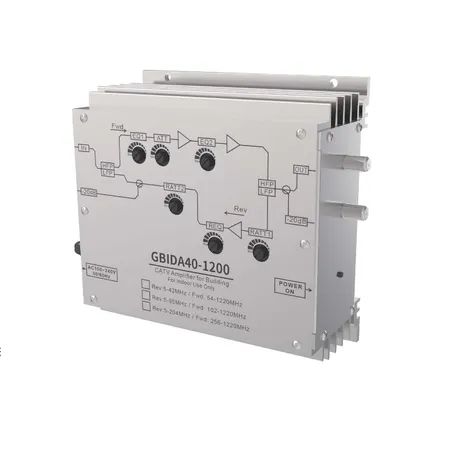 The ampiffer applications for indoor advanced HFC network installations in apartment buildings, hotels, schools, hospitals ..., having high RF amplification requirements. Designed with high gain this amplifier can be mounted directly to a wall with increased heat dissipation properties and low power consumption.