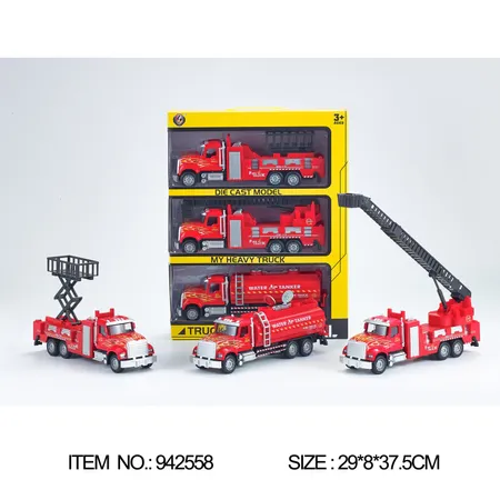 1:28 3 PCS FRICTION METAL FIRE ENGINE PLAYSET,TEST REPORTS:EN71 PART1-2-3/PHTHALATE.