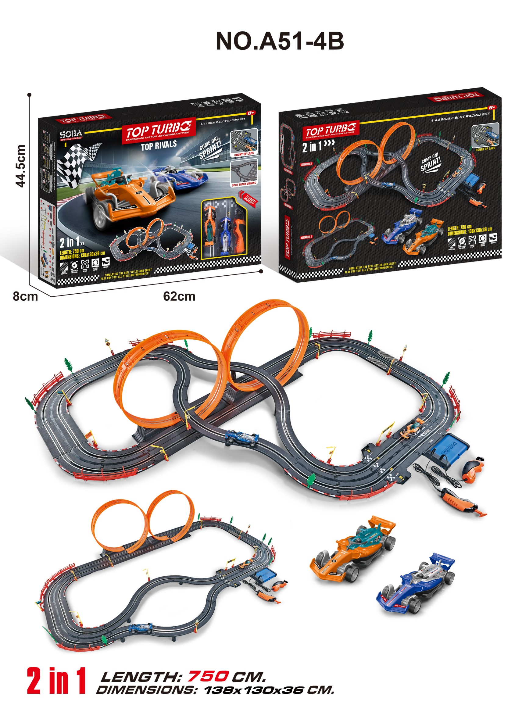 Track length: 7.5 meters. Track assembly size: 138 * 130 * 36 cm.