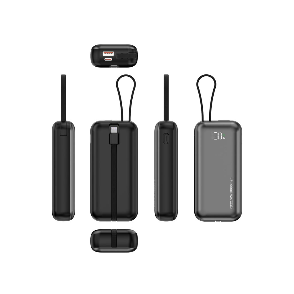 10,000 mAh PD22.5W Fast Charging Power Bank with Built-in Lightning Cable includes the following features :