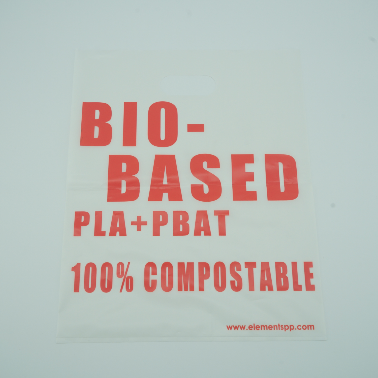This plastic bag made of PLA plastic. We have a TUV certificate to prove that it compostable. It feels soft. The color is white. It is often used for packaging products. We can print the logo and pattern you want.