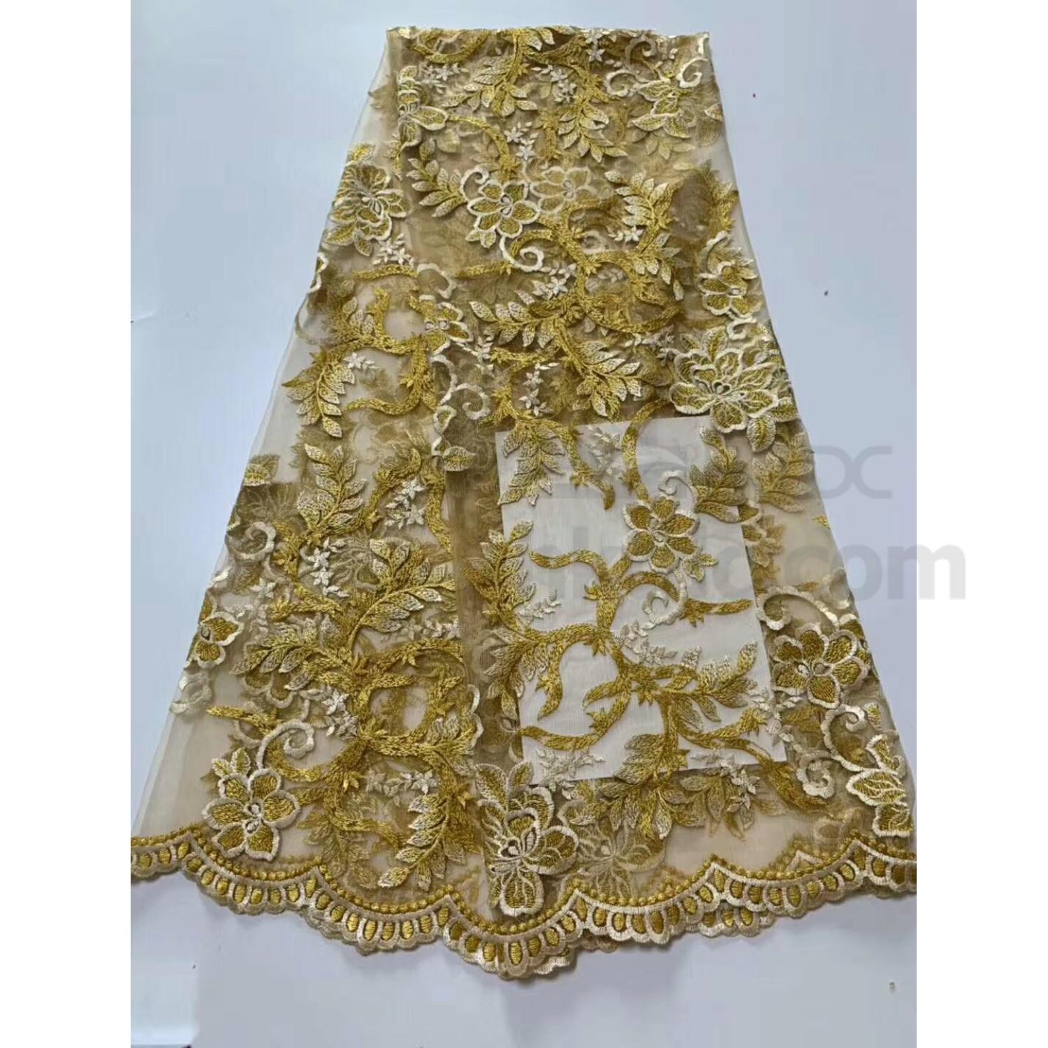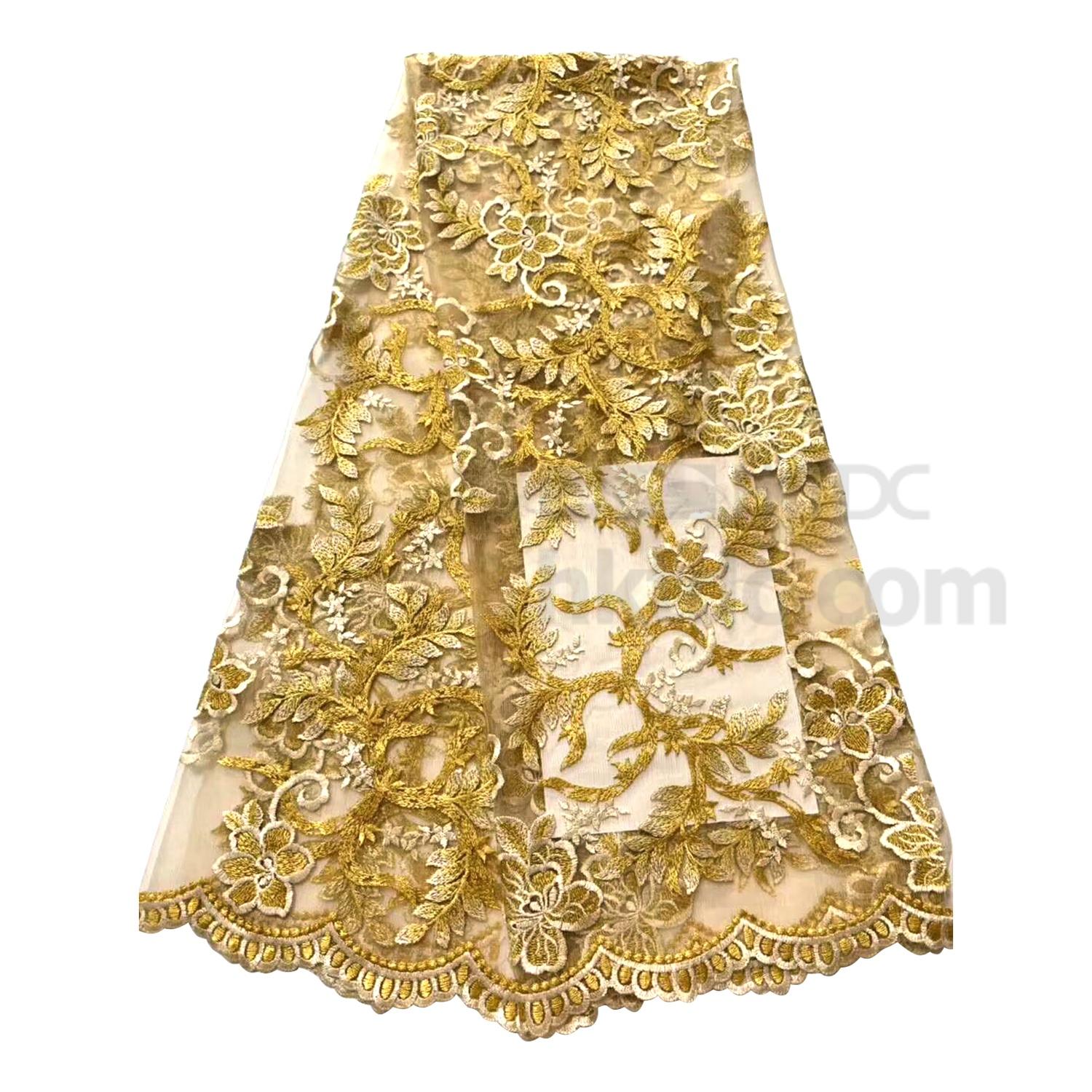 100% Polyester French Tulle Lace Fabric Decorated with Golden Thread