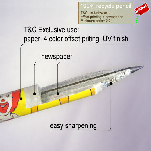 - Paper: recycled paper (containing 100% recycled newspapers with environmentally friendly painting).