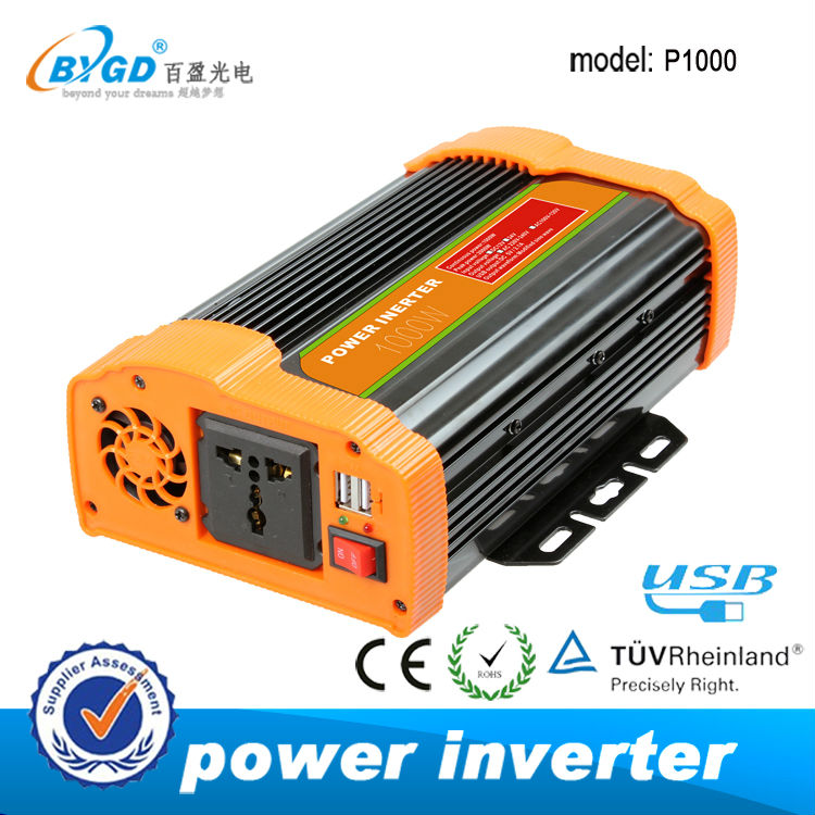 Continuous Power:1000W Peak Power:2000W Input Voltage:DC 12V Output Voltage:AC220-240V/AC100-120V USB:DC 5V(MAX 500MA) Wave Form:Modified sine wave form Frequency:60Hz/50 +/-3Hz Protections:Overload,Overheat,Short-circuit,Lowvoltage,Overvoltage,Reverse polarity protection