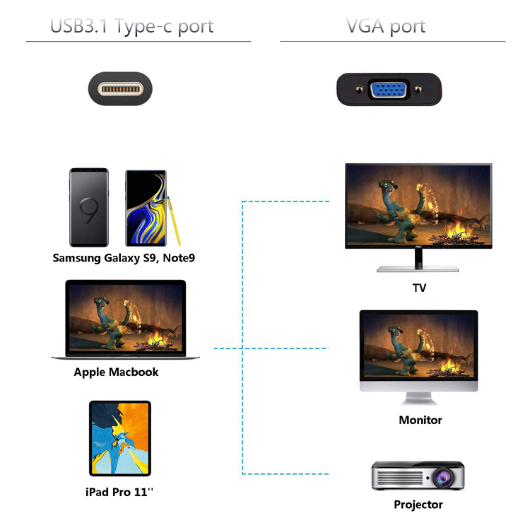 - Hdmi to VGA convertor with 3.5mm Audio port can transport Audio and video at the same time. Don't need power supply.