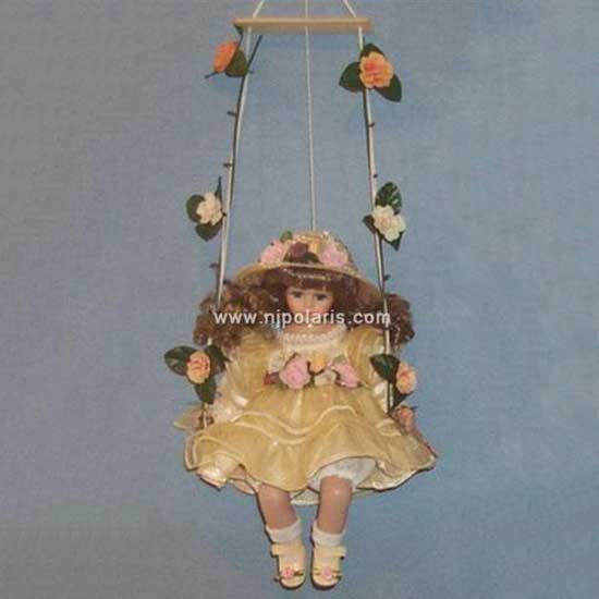 This 12" porcelain doll sitting on the swing is highly detailed and utterly adorable. It is finely made with delicate craftsmanship. This beautiful collectible doll makes a delicate lovely home decoration and seasonal gift.