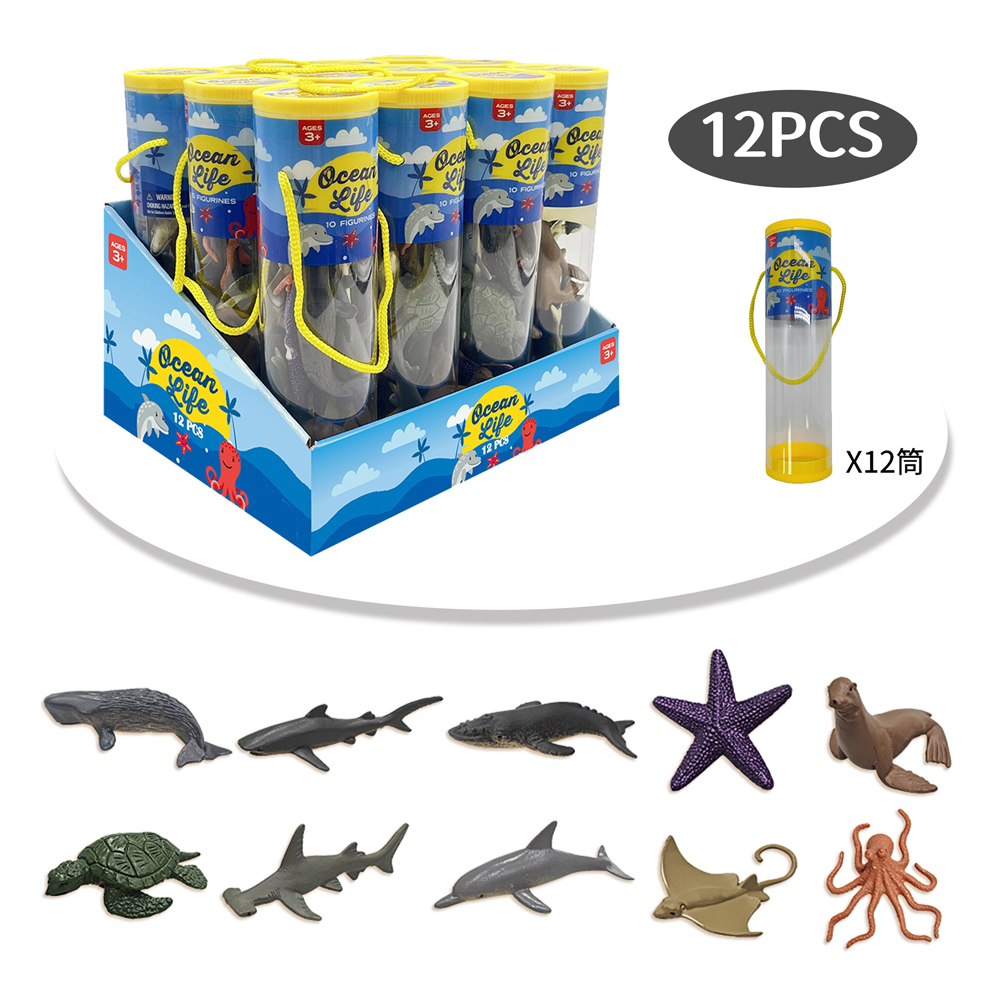 Each tube contains 10 realistic mini sea creatures, including whales, sharks, dolphins, starfish, sea lions, turtles, octopuses, rays and more. Made of durable, non-toxic plastic, these detailed figures are perfect for educational play, party favors, or sensory bin fun. The portable tubes with carry handles make storage and travel easy. Packaged in a display box with 12 individual tubes, this set is ideal for bulk gifting or retail display!