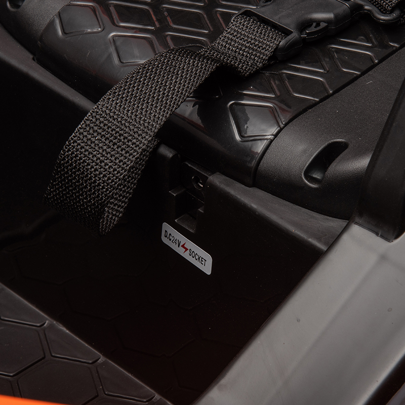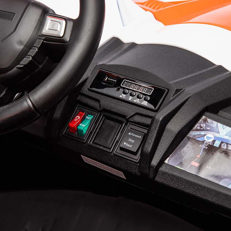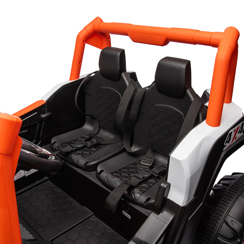 With remote control, one-button start, independent light switch, forward/reverse, music and lighting, seat belt, high and low speed