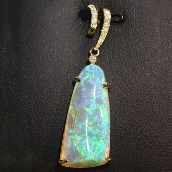 Showcased here is a 14K pendant with delicate details. The featured pendant is embellished with a well-polished opal and dazzling diamonds for an alluring and sparkling touch. This 14K gold pendant complements your elegant look in a dainty way.