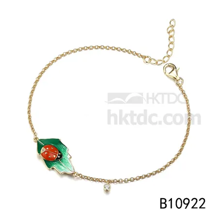 14K Gold Plating Sterling Silver Leaf Enamel Jewelry Set