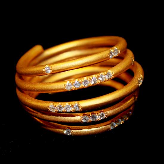 This featured ring offers an exotic and complicated design completed with 14K gold and sparkling diamonds. This handmade piece offers a unique style for the ring. This ring pairs well with your daily outfits.