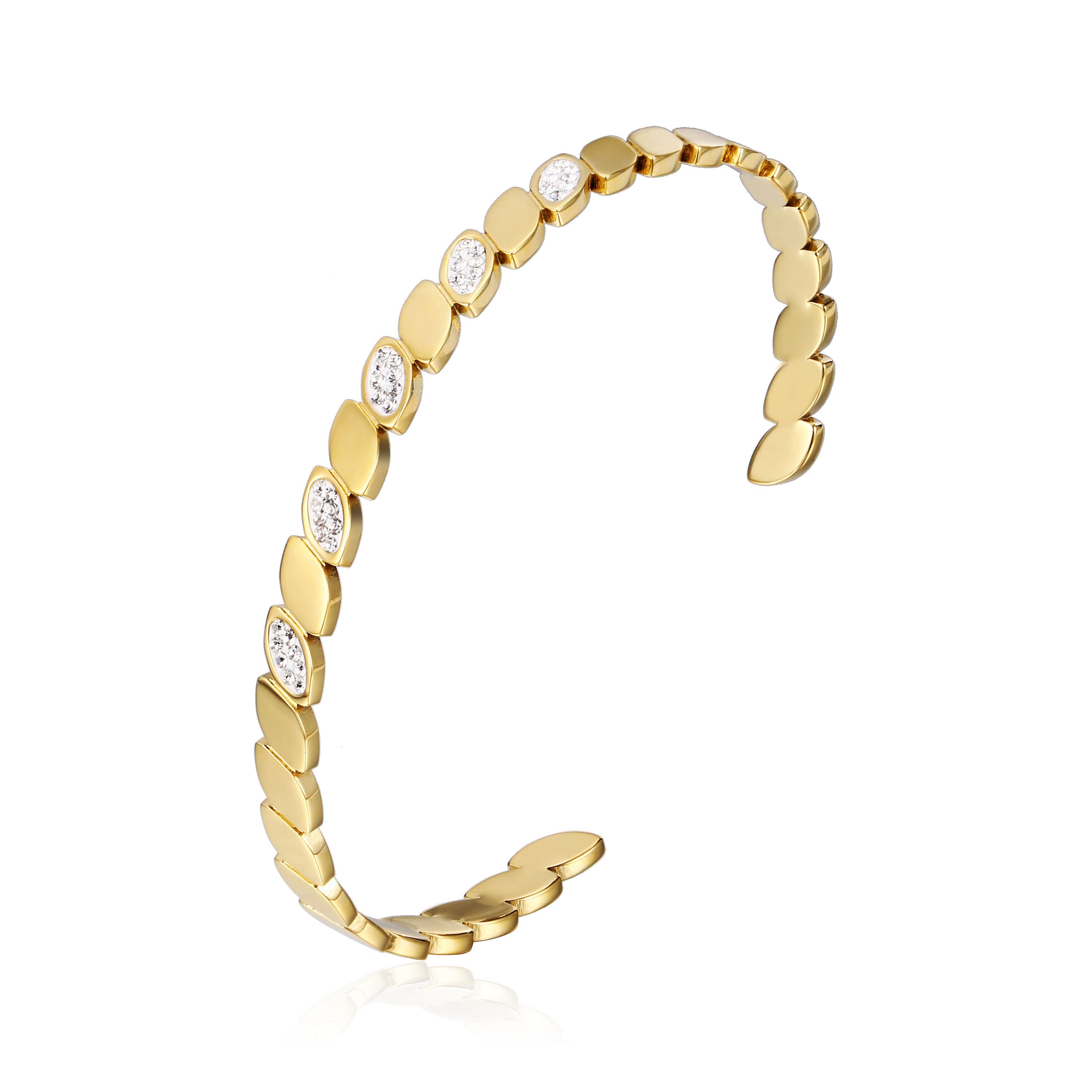 14k Gold PVD Plated Stainless steel Bangle with crystal